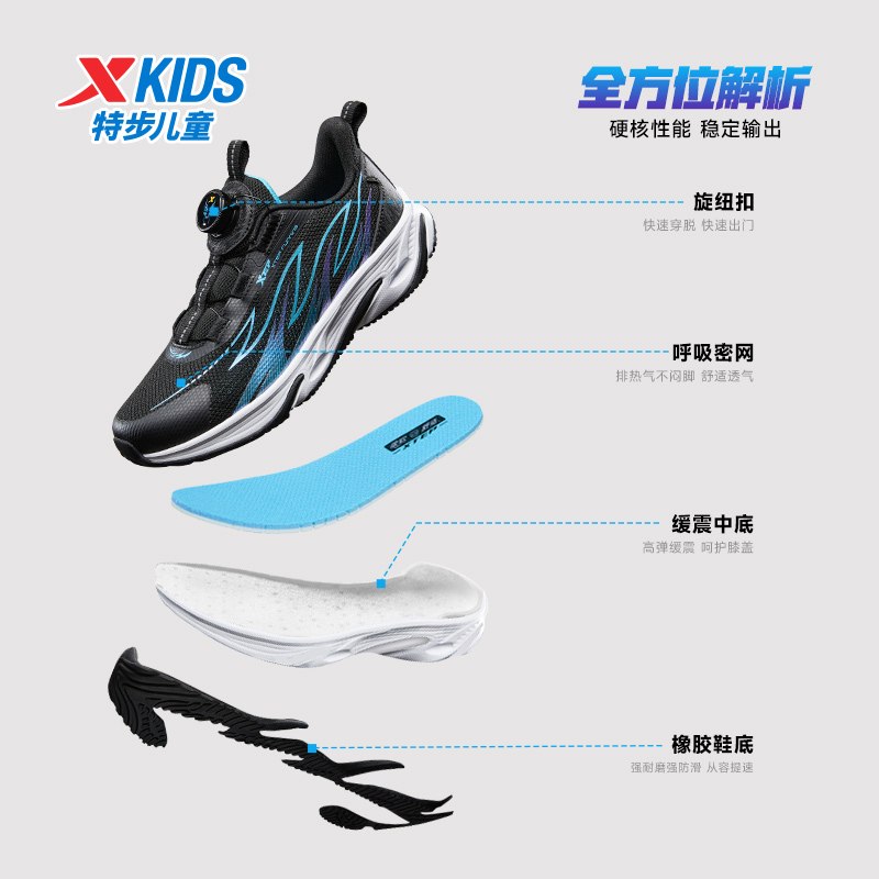 软底减震儿童运动鞋 男童跑步鞋 秋季 休闲鞋 特步童鞋 新款 子 瞬影