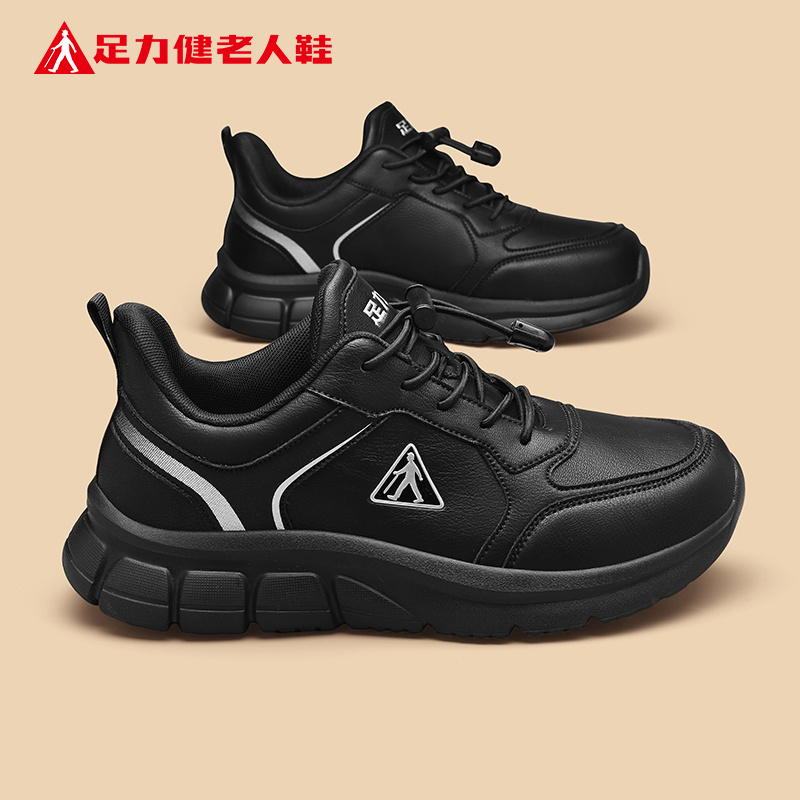 秋季 女鞋 皮面中老年妈妈休闲运动健步 官方旗舰店正品 足力健老人鞋