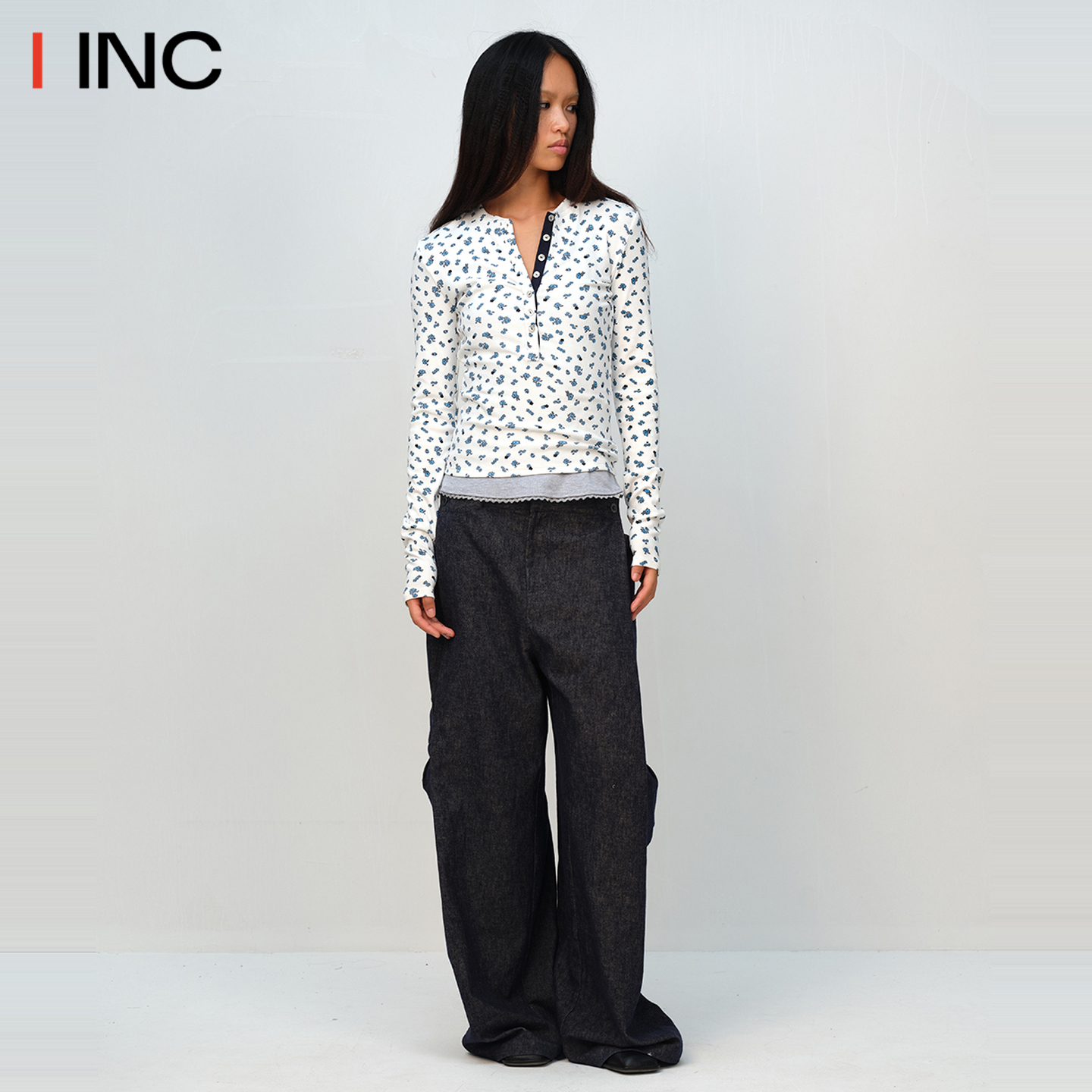 T恤女25AW秋冬新款 碎花亨利领长袖 上衣IINC CIRCLE方圆 SQUARE