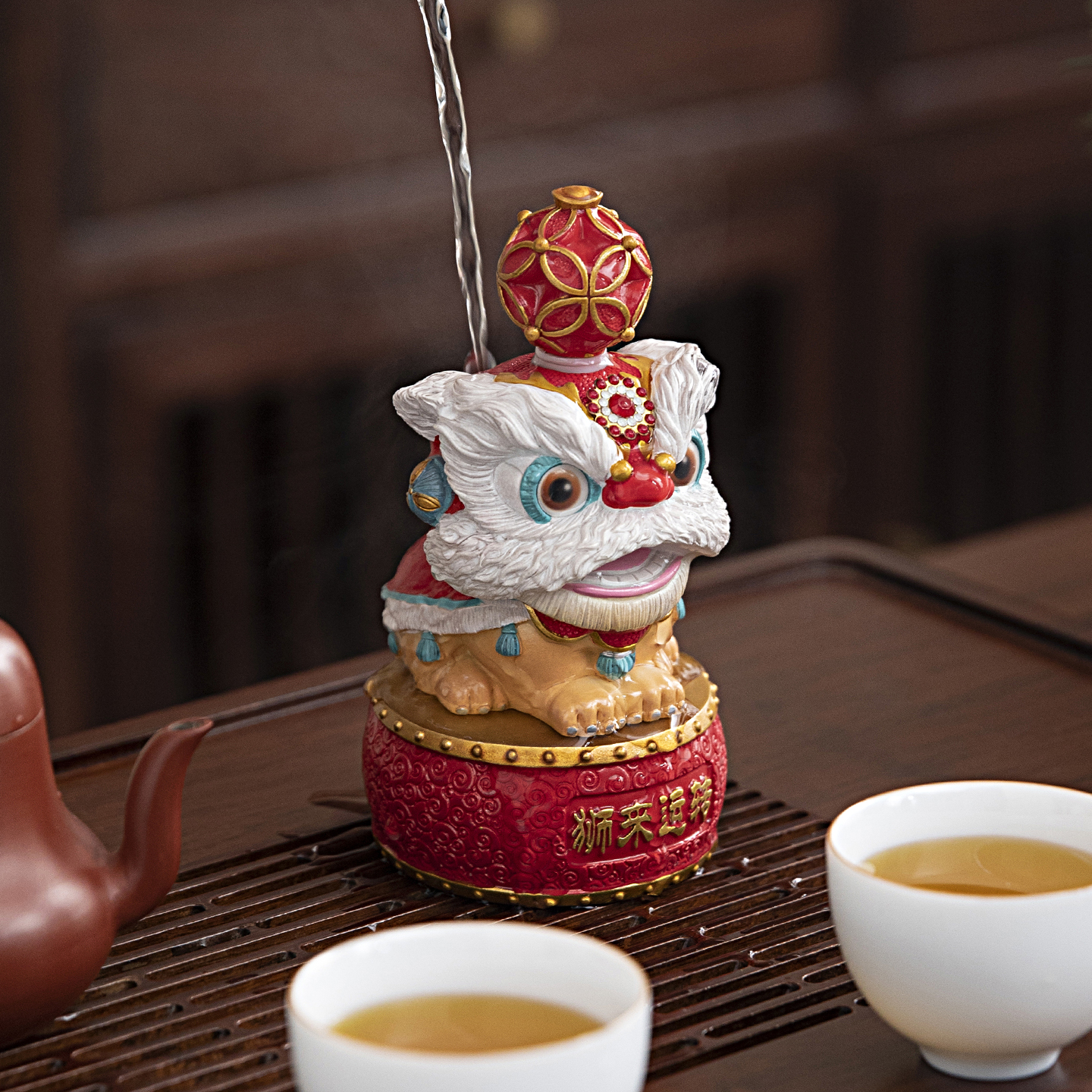 国潮醒狮变色茶宠精品可养摆件桌面茶桌茶盘茶几装 饰高级小众茶玩