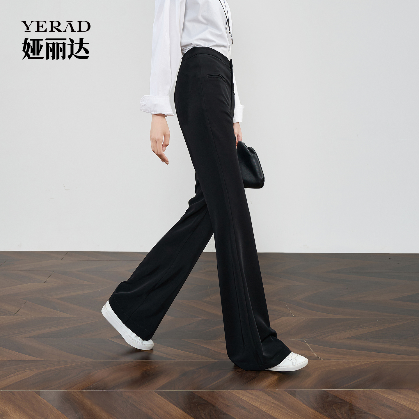 女春秋新款 休闲直筒慵懒松弛感裤 高腰垂感窄版 裤 子 西装 黑色阔腿裤
