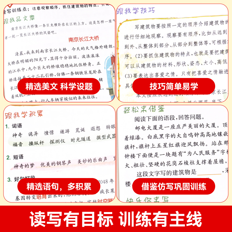 四年级阅读与写作 语文小学生课外阅读强化练习题 四年级上册下册阅读理解与写作同步作文专项训练人教版