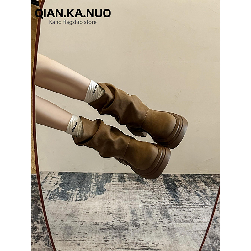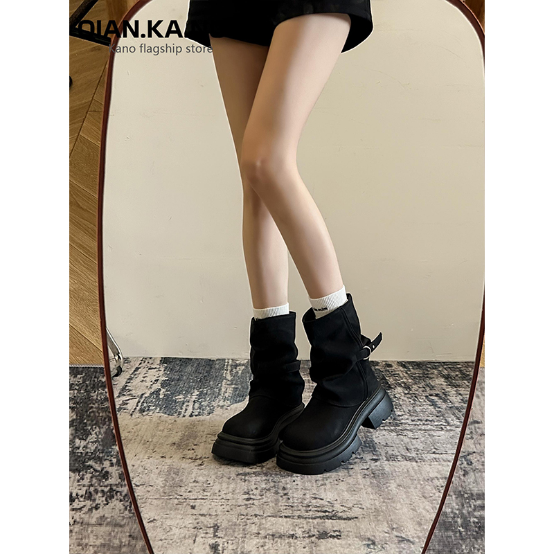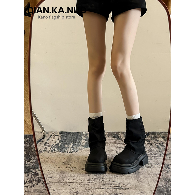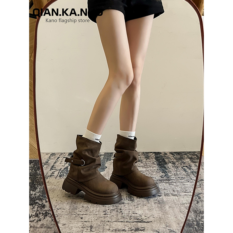 时尚 管短靴女2025早秋新款 流行洋气复古粗跟美拉德 靴秋冬裤 新疆鞋