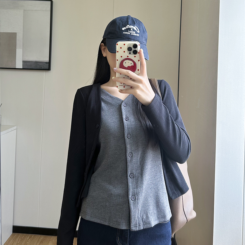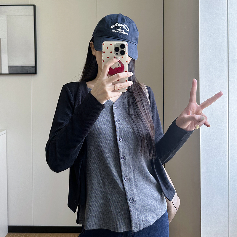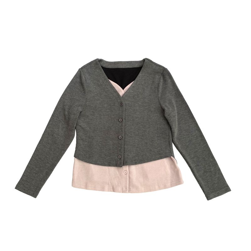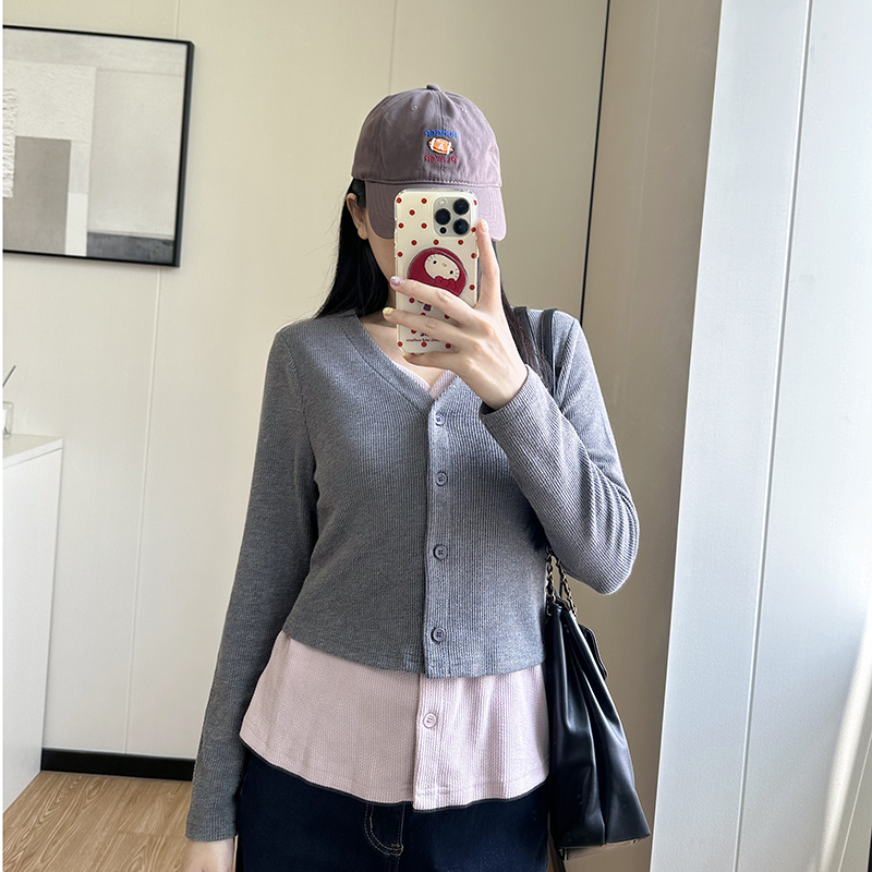 秋冬2025新款 大码 长袖 假两件针织开衫 胖mm设计感宽松打底上衣 女装