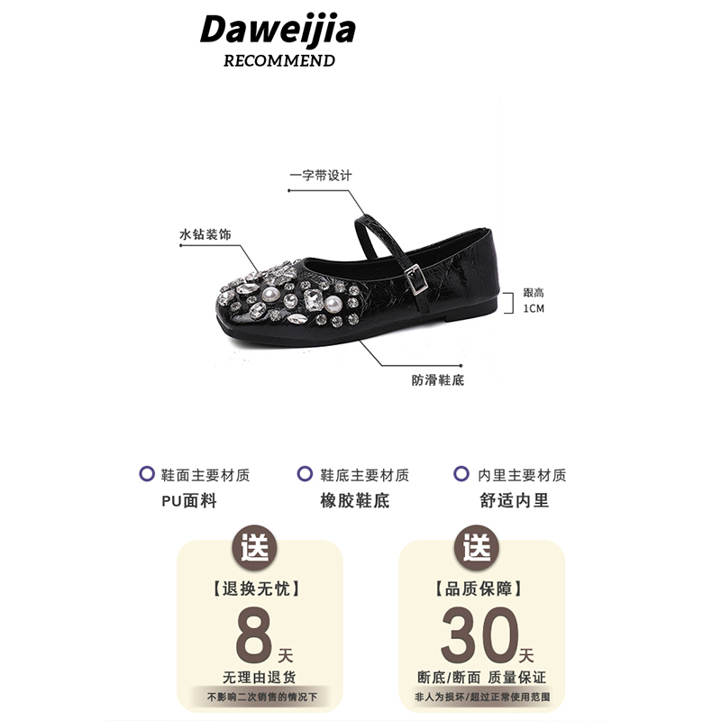 仙女风银色水钻玛丽珍鞋 平底配裙子单鞋 女2025年秋季 爆款 新款 韩版