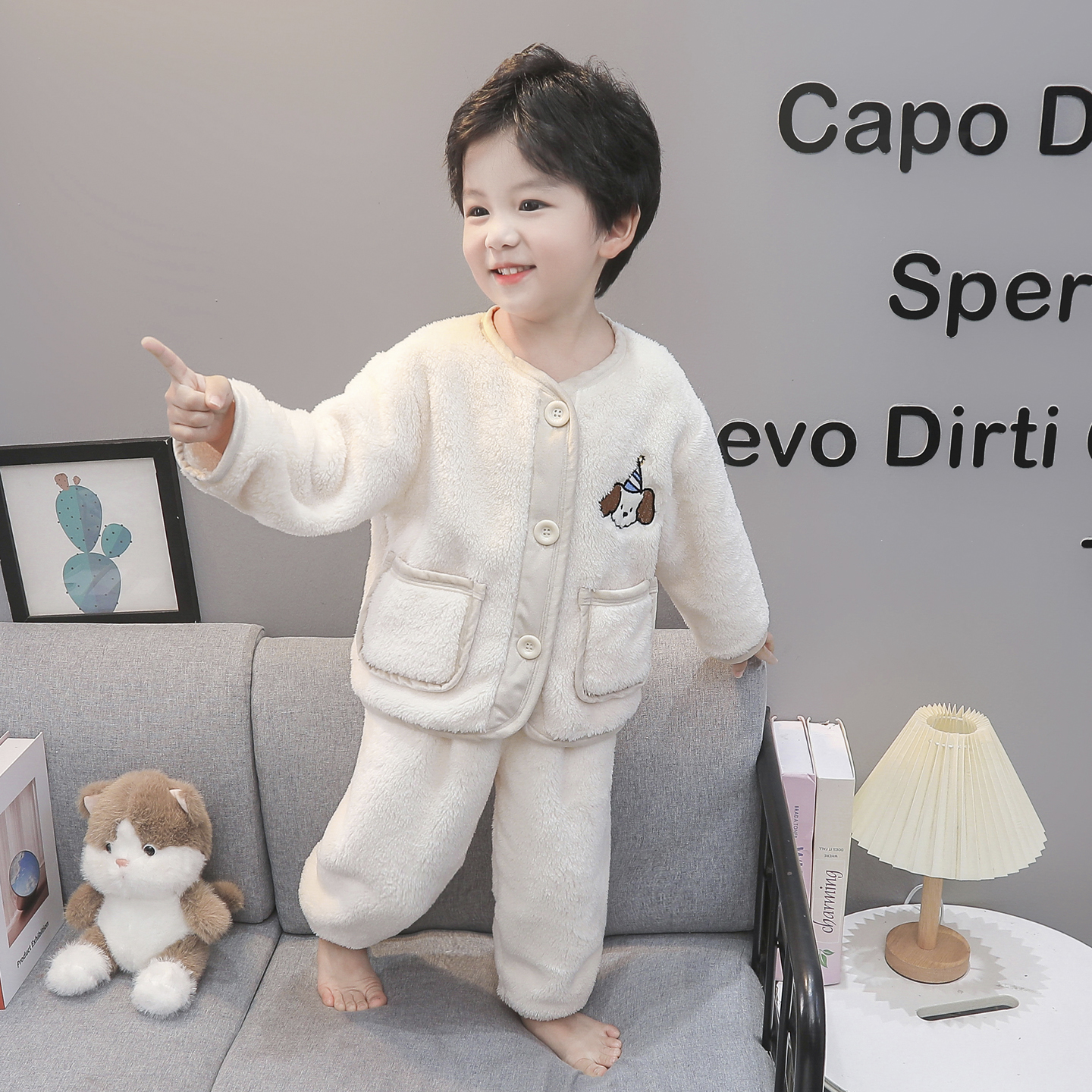儿童睡衣秋冬男童家居服珊瑚绒冬季 小男孩居家服 加绒加厚2025新款