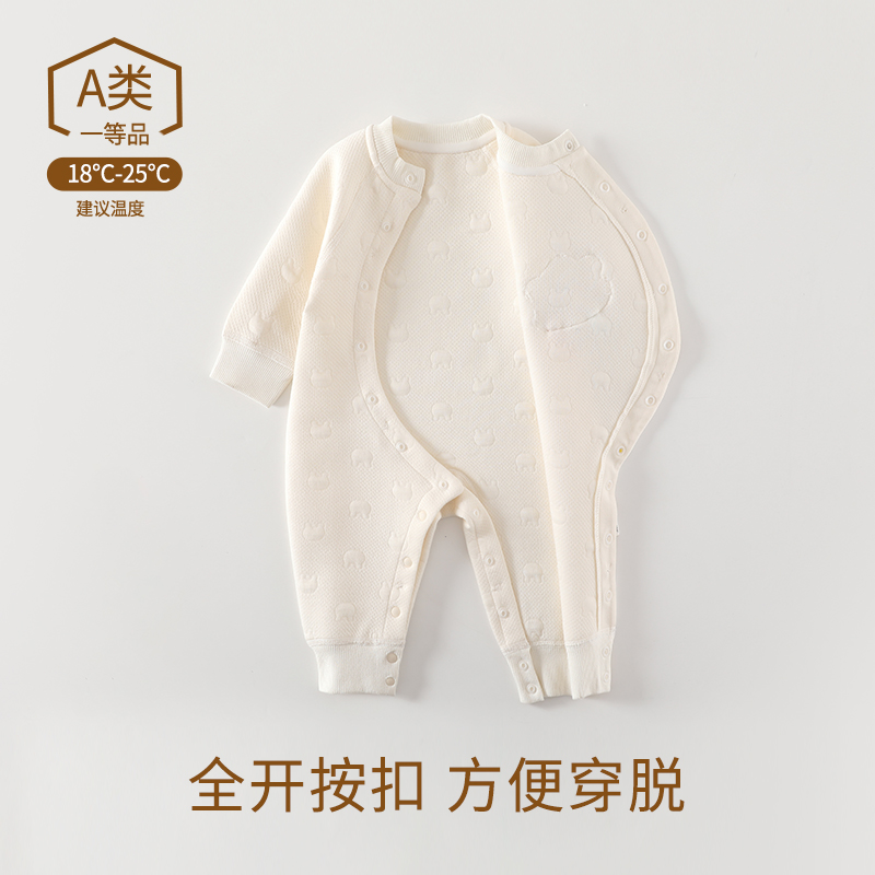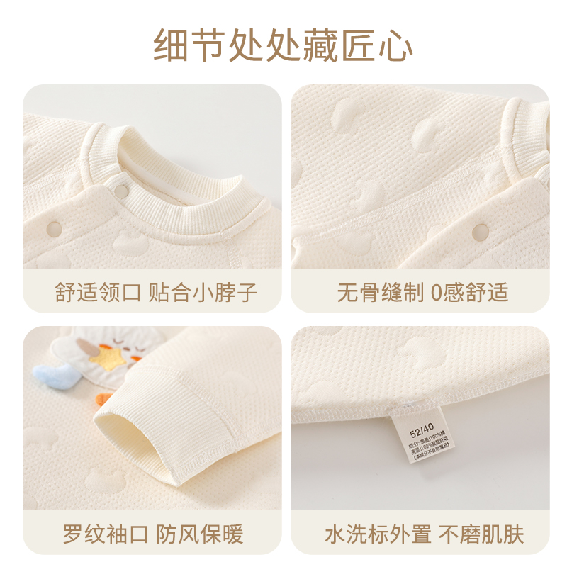 婧麒婴儿连体衣秋冬宝宝哈衣纯棉爬服长袖 偏襟夹棉保暖衣服爬爬服