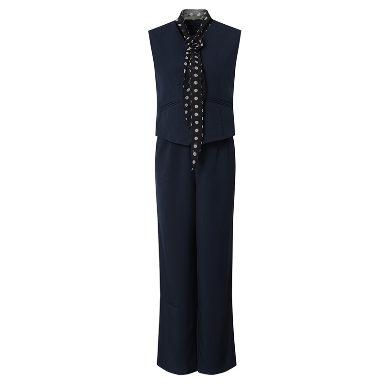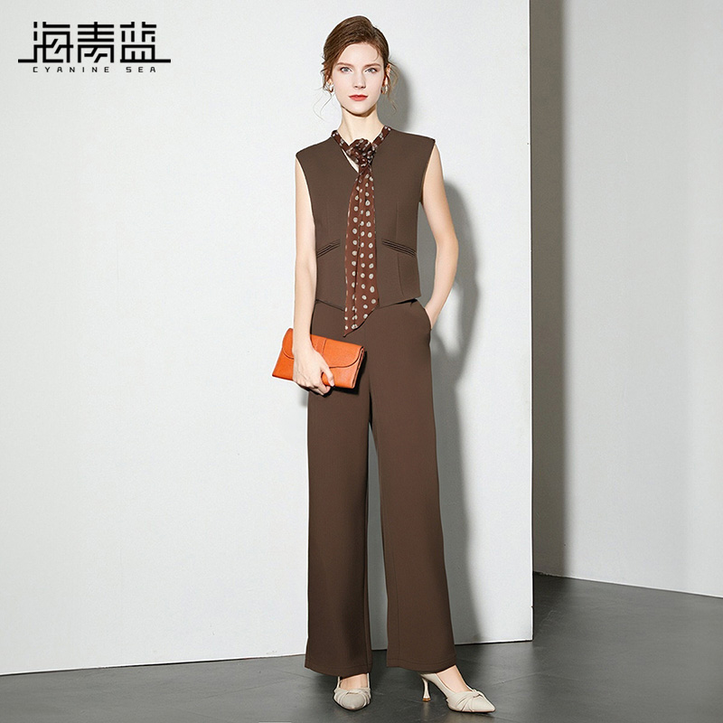 无袖 女2025新款 马甲上衣女装 时尚 两件套 海青蓝 气质休闲裤 秋套装