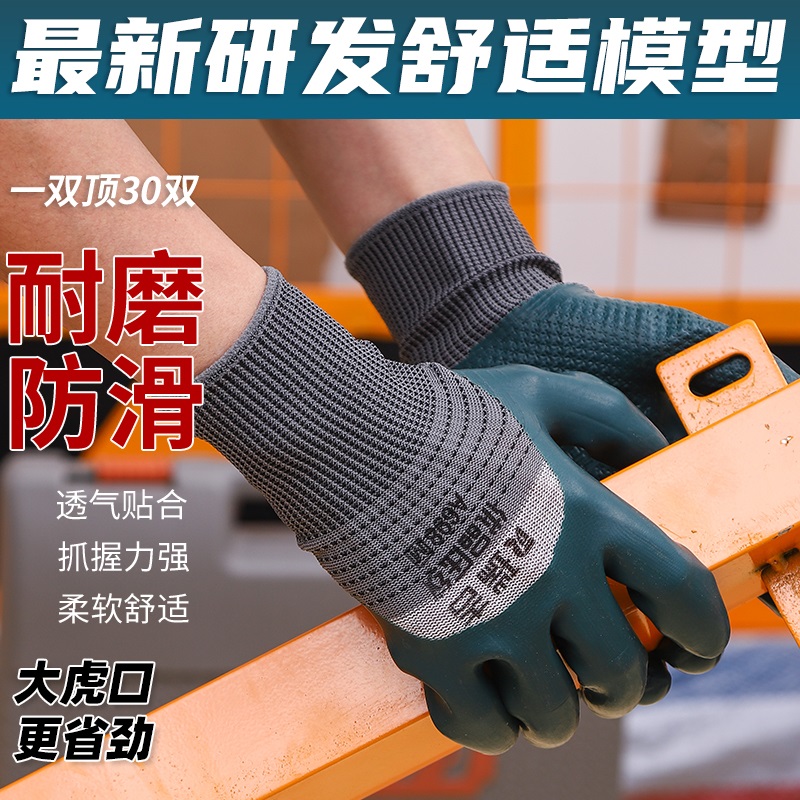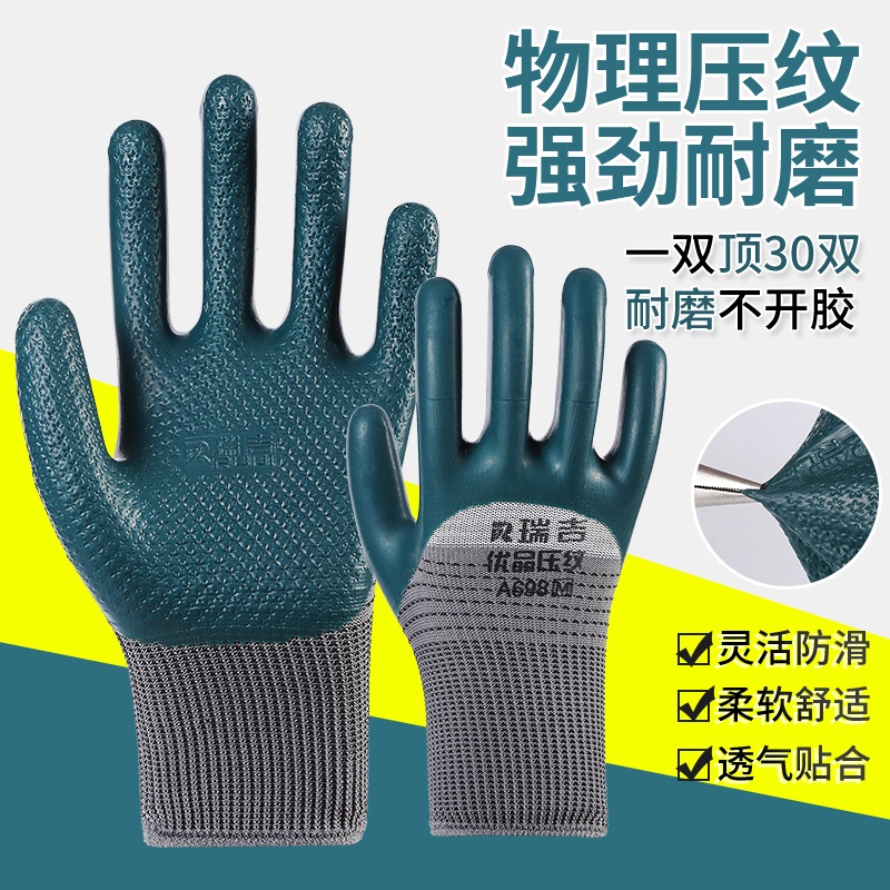 正品 劳保手套A698加厚耐磨耐用干活工地透气橡胶压纹不烂防滑防水