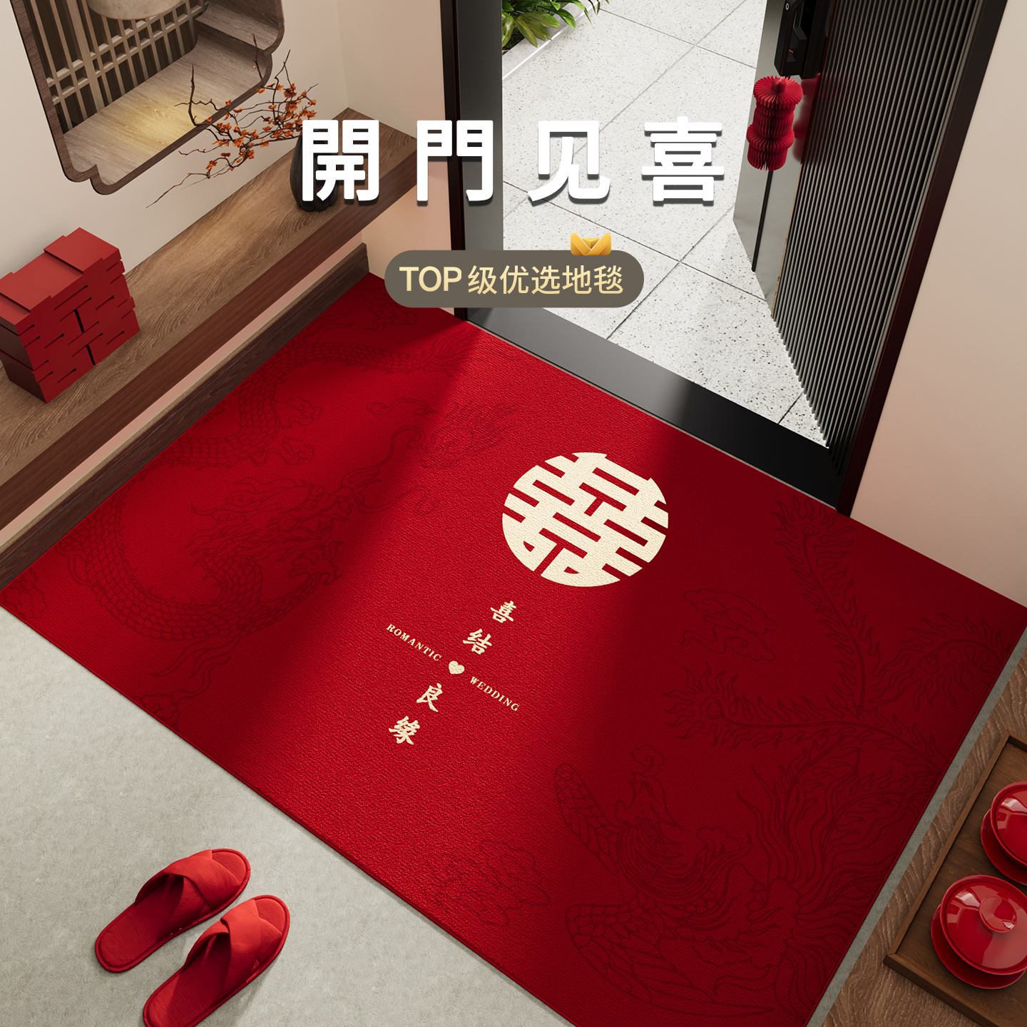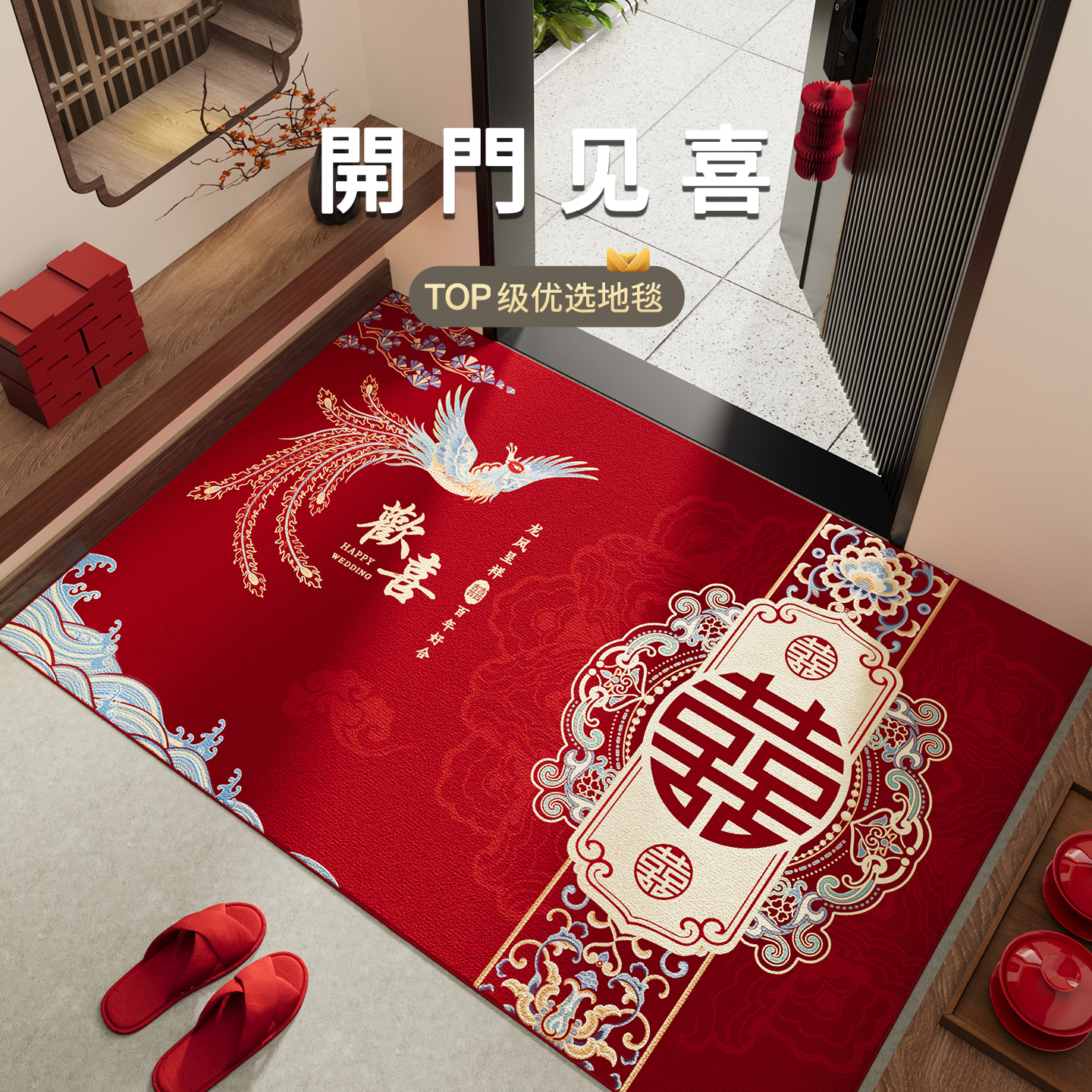 新中式 结婚地垫喜庆入户门地垫红色进门口门垫婚房布置喜字脚垫子
