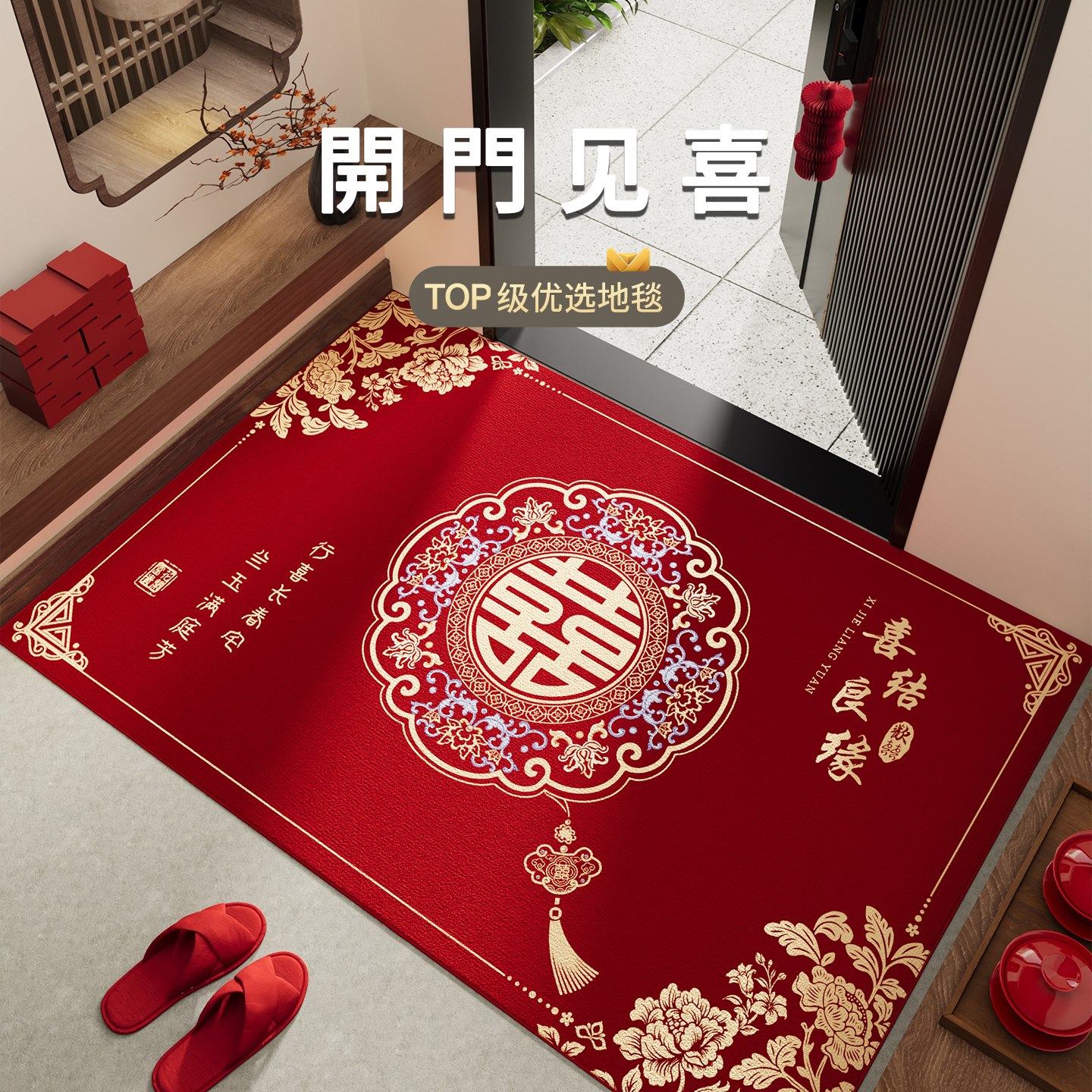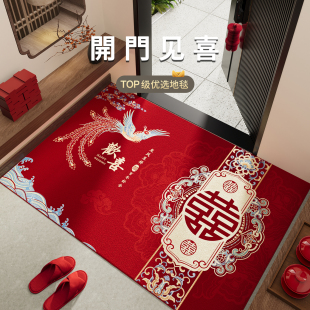 结婚门口地垫入户门垫喜庆进门喜字新房脚垫婚房装 饰布置红色地毯