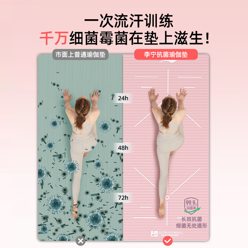 李宁瑜伽垫女士健身垫家用抗菌无味运动垫防滑缓震2025新款 专业垫