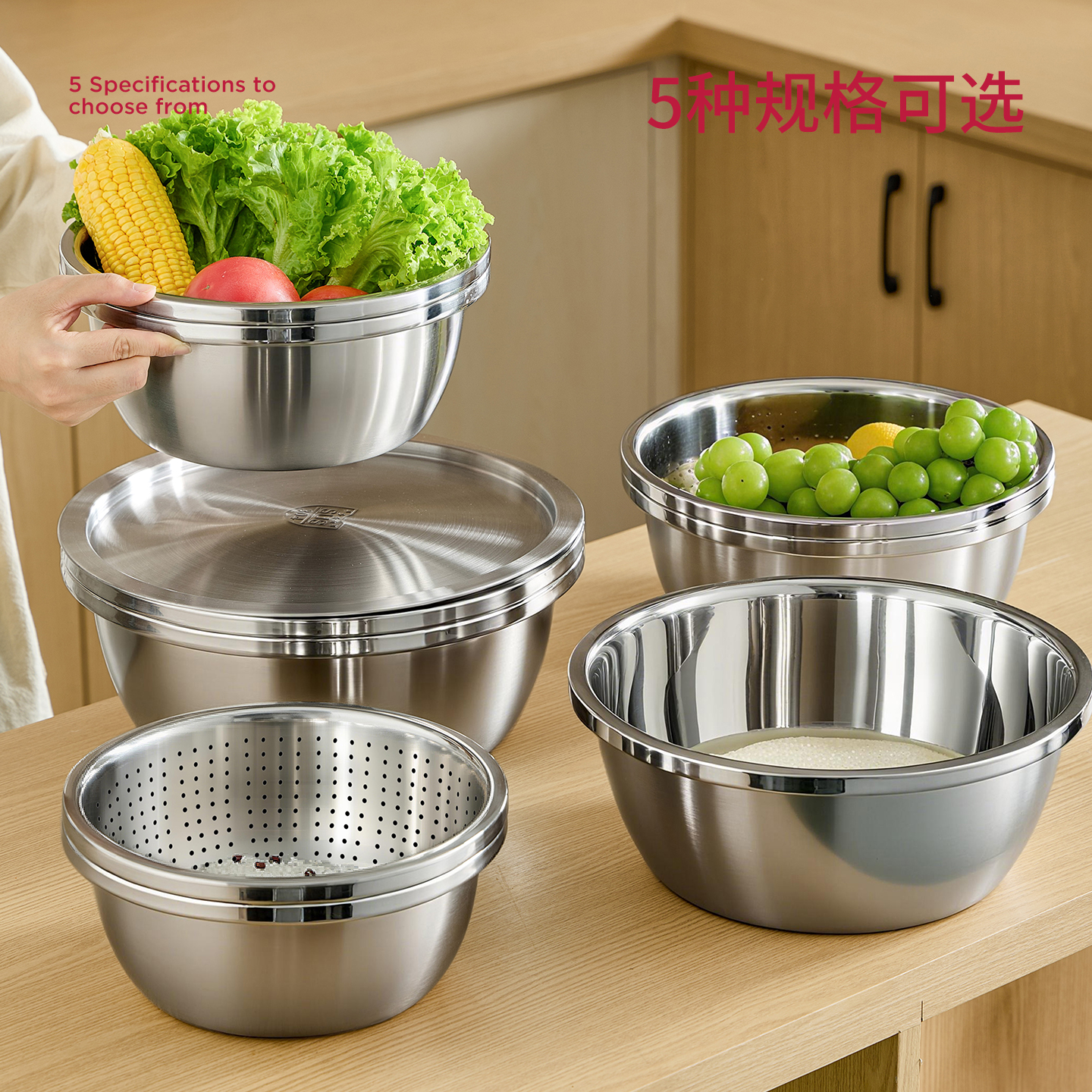 食品级加厚不锈钢盆和面盆不锈钢沥水篮洗菜盆打蛋盆厨房家用盆子