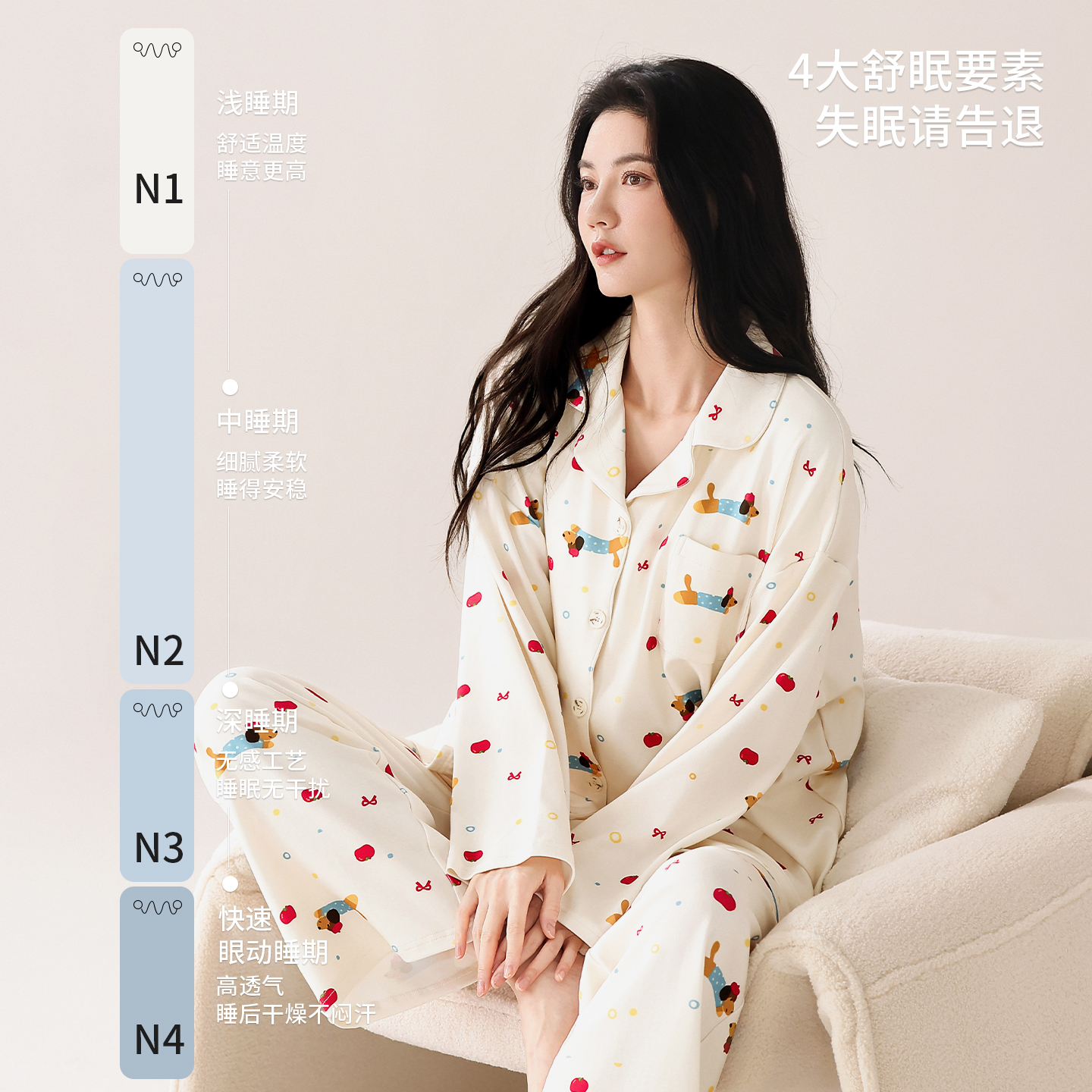 少女可外穿家居服 套装 马克公主睡衣女春秋新款 多巴胺可爱纯棉长袖