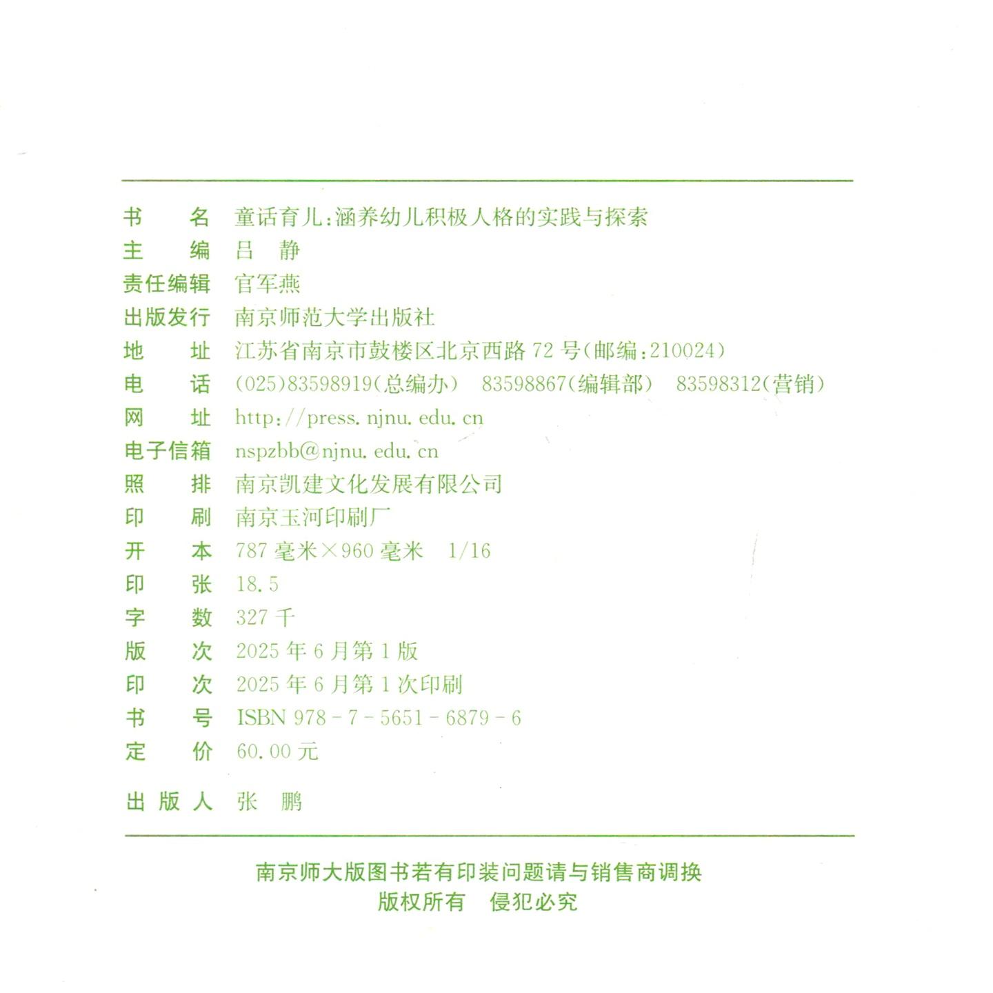 吕静 主编 南京师范大学出版 涵养幼儿积极人格 社 教研活动 实践与探索 幼儿园童话生活课程 童话育儿 学前教育