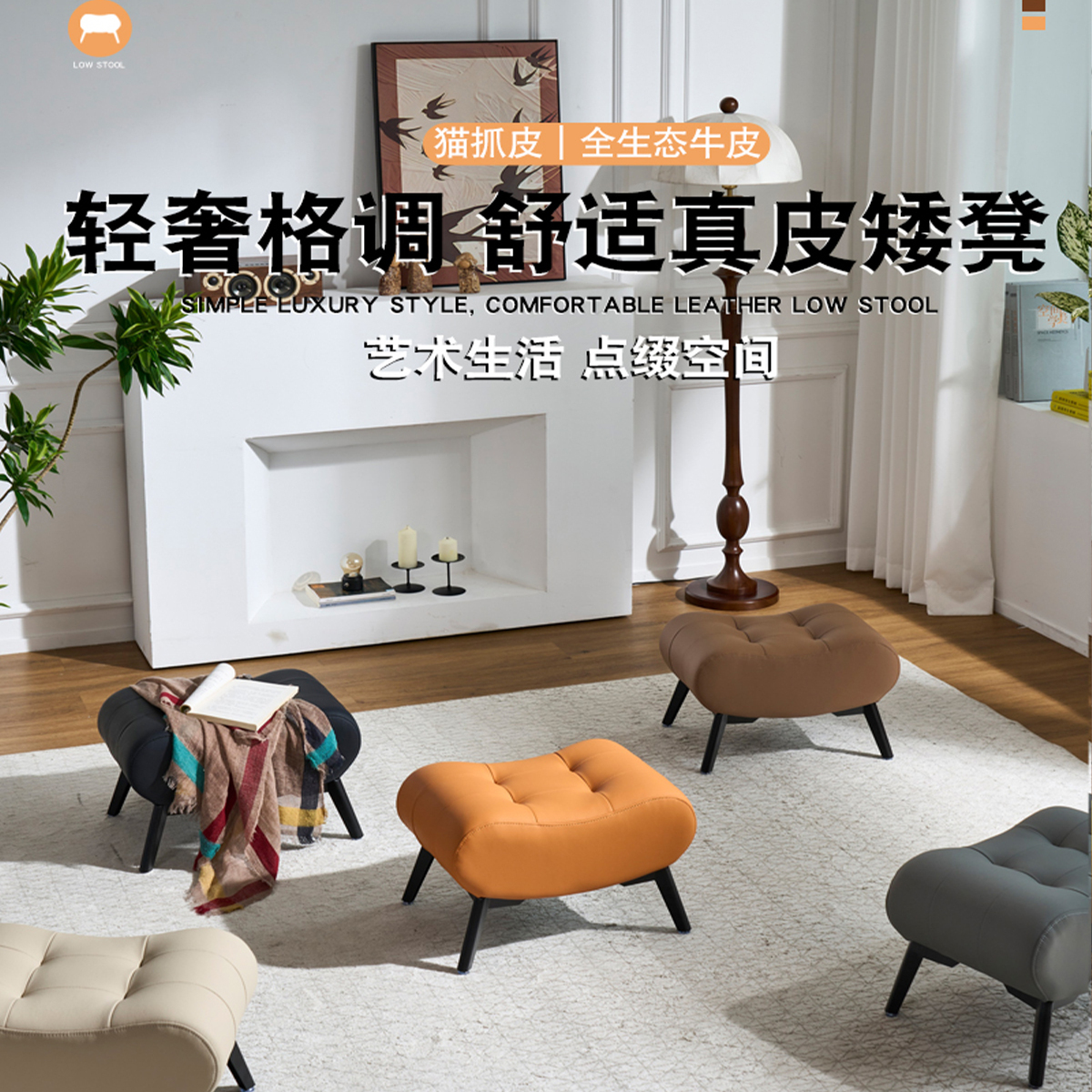 实木凳子矮凳家用小凳子客厅高级感沙发凳轻奢小板凳墩子凳换鞋 凳