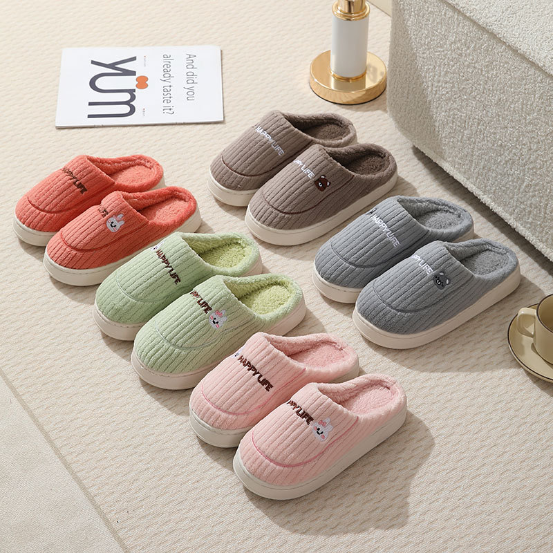 室内家居家防滑厚底踩屎感毛毛绒保暖情侣拖鞋 秋冬季 女 男士 棉拖鞋