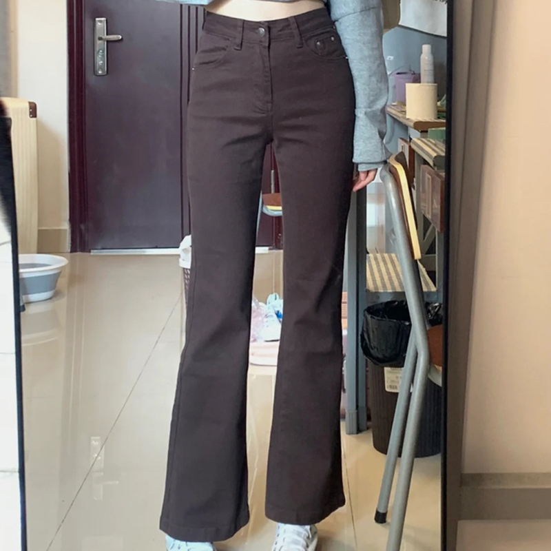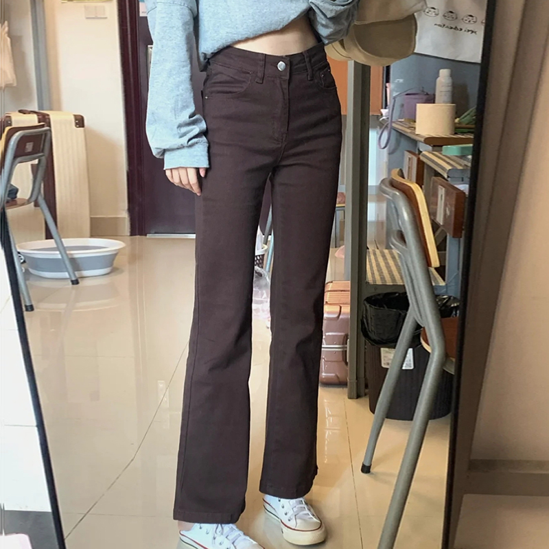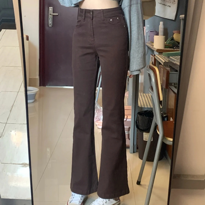 子深蓝色微喇牛仔裤 显瘦辣妹喇叭裤 女 高腰弹力修身 2025早秋新款