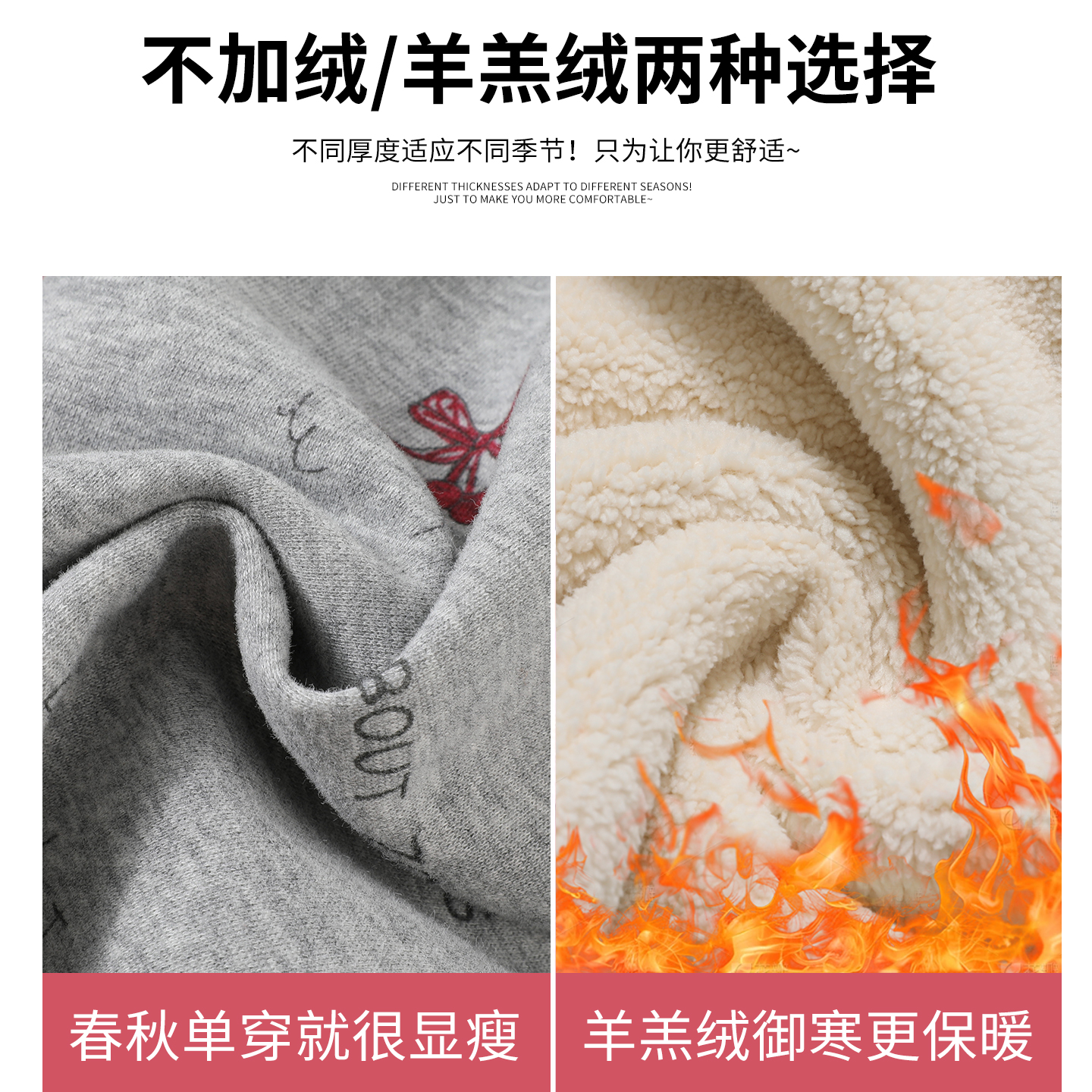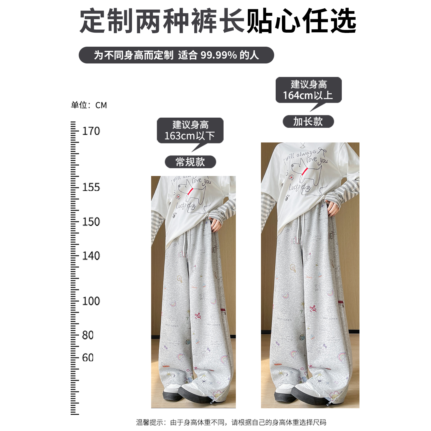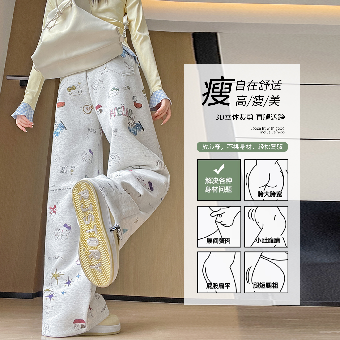 加绒束脚高腰宽松小个子显瘦直筒休闲卫裤 kt猫印花阔腿裤 女秋冬季