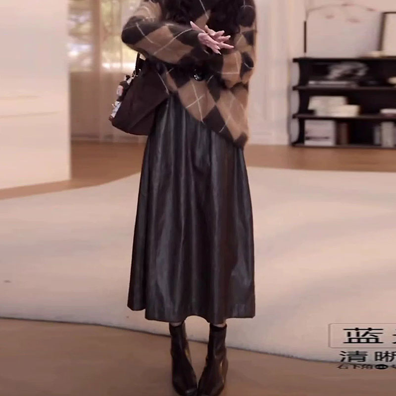 紫涵高腰格纹百褶a字裙短裙女冬季 甜美学院风半身裙子小个子 新款