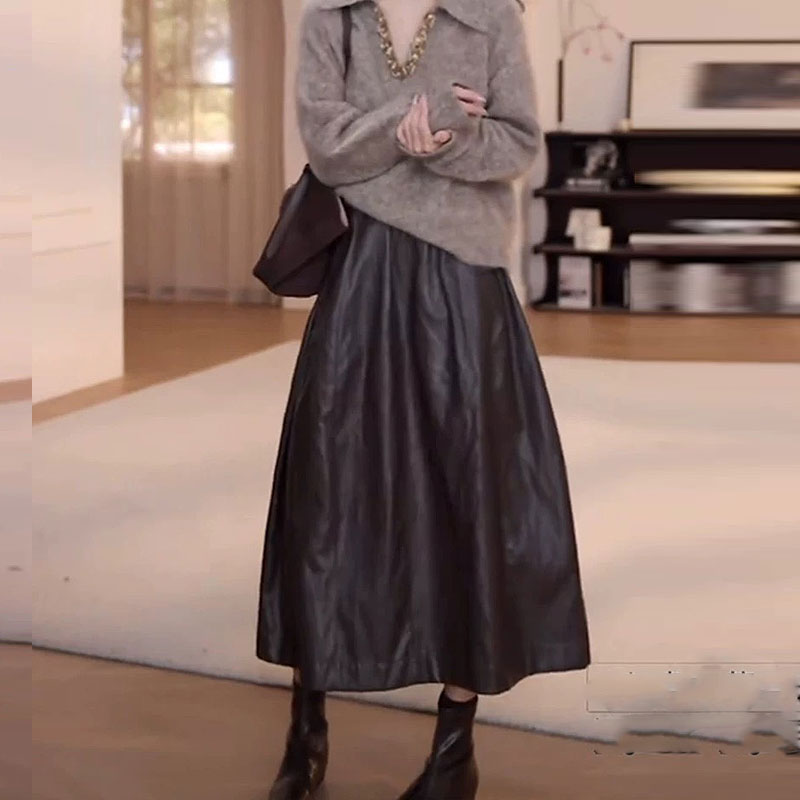新款 小野和子百褶半身裙女中长款 秋高腰A字小个子学院风灰色西装