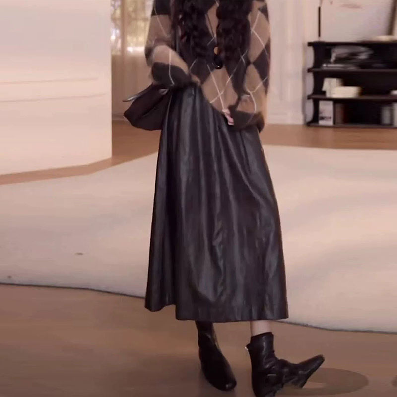 纯色金丝绒半身裙女春秋中长款 绒面遮跨a字一步长裙 2025高腰新款
