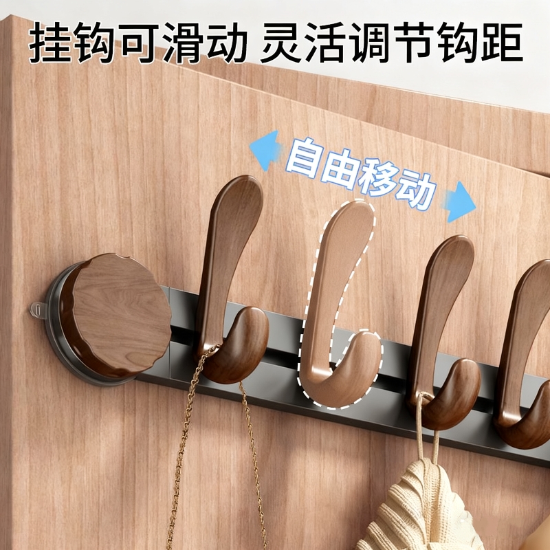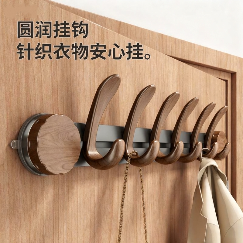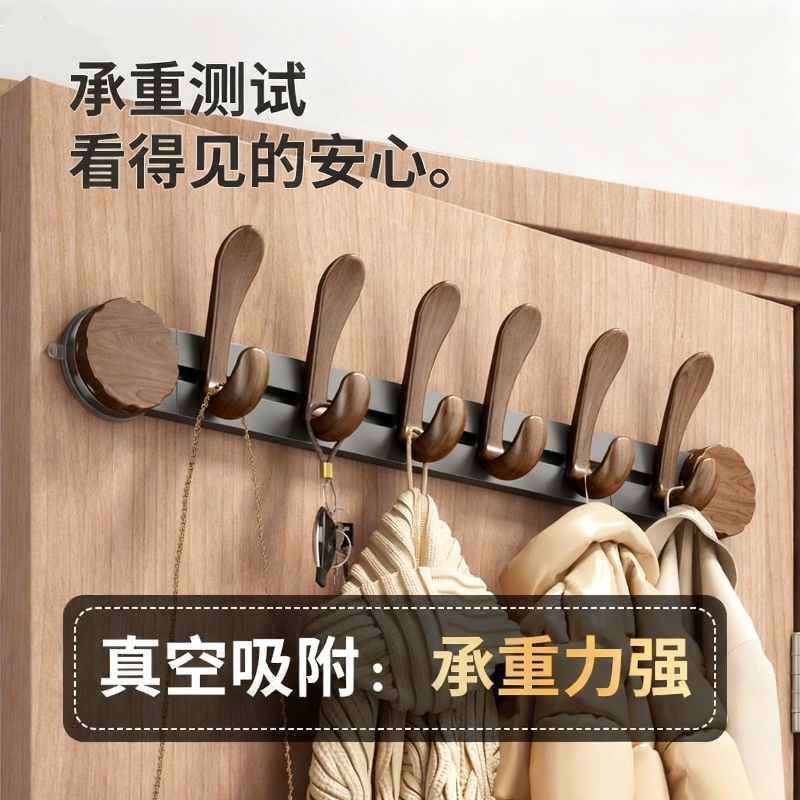 胡桃木真空吸盘挂钩强力承重免打孔入户门后厨房卫生间浴室挂衣钩