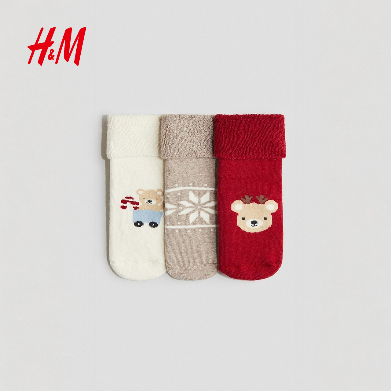 保暖外出时尚 HM童装 新款 2025秋冬季 毛圈袜1167714 女婴袜子3双装