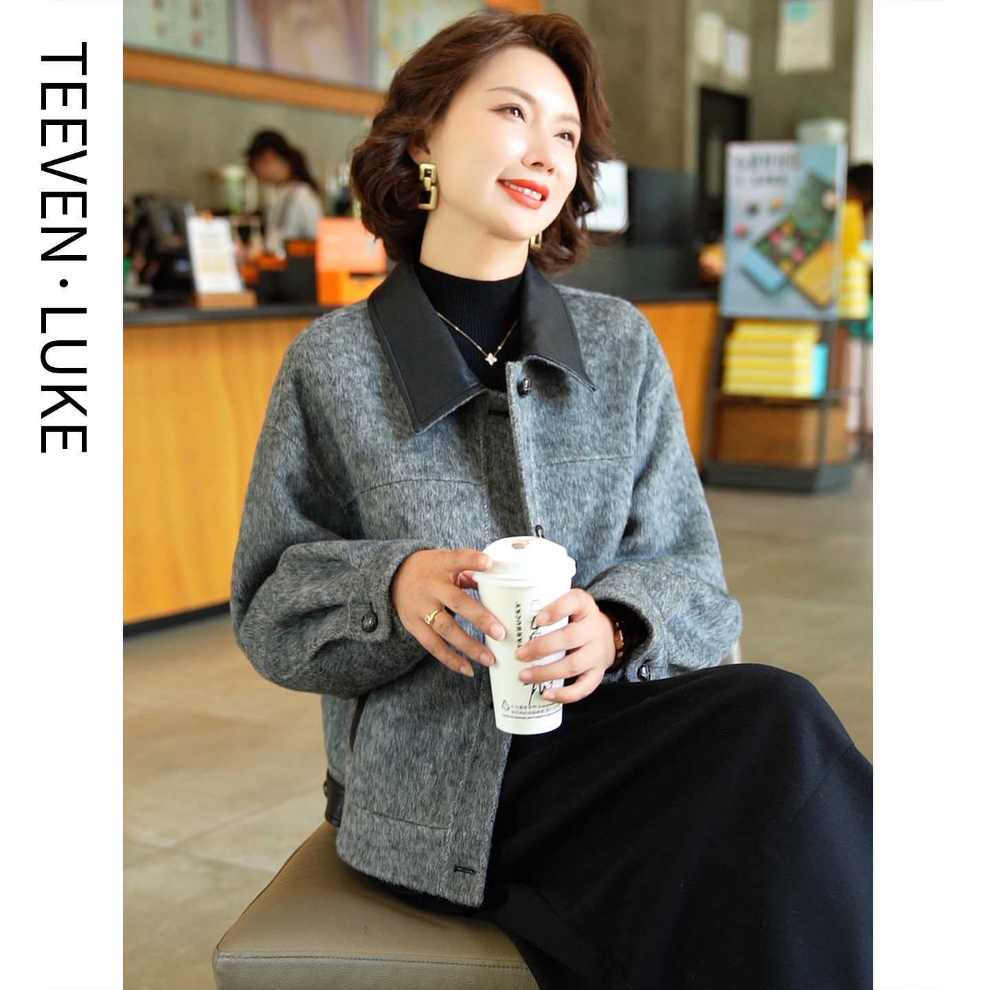 图曼朵灰色双面呢羊毛大衣女秋冬新款 毛呢短外套 高级感小个子短款