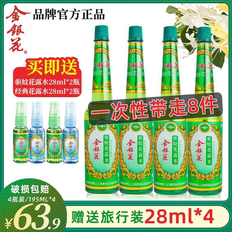 195ml 清凉拖地驱蚊止痒喷雾 款 上海老牌金银花花露水玻璃瓶经典