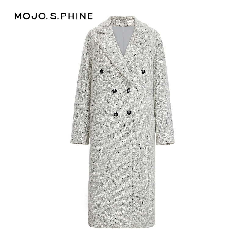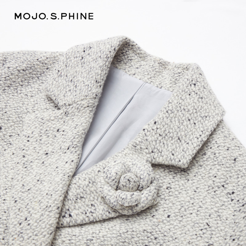 MOJO莫佐夹花彩点花呢西服立体直角肩香风毛呢外套大衣长朗姿集团