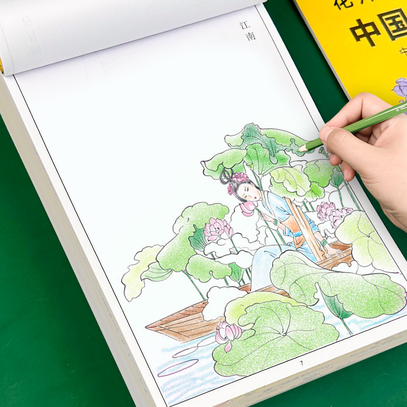中国画白描工笔画临描练习本全10本 入门描摹本国画国风古风花鸟虫鱼花卉人物风景古诗草药底稿线稿描红基础书