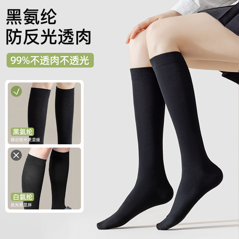 薄款 黑色袜子女中筒袜春秋季 堆堆长筒过膝袜jk压力瘦腿小腿袜夏季