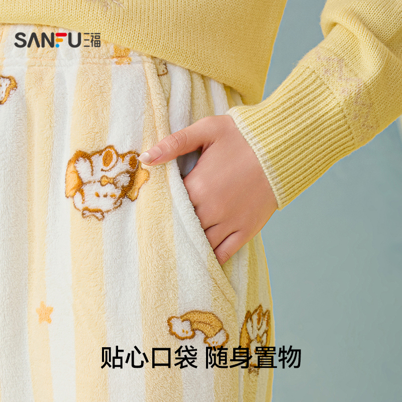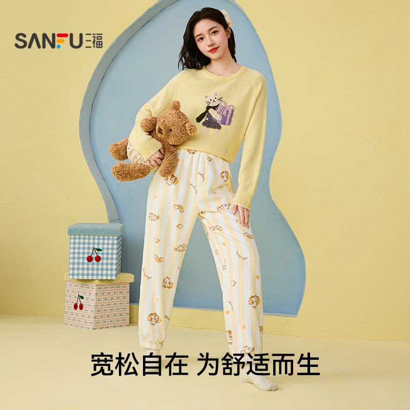 子507798 宽松抗静电保暖家居服裤 三福女冬季 珊瑚绒卡通单裤