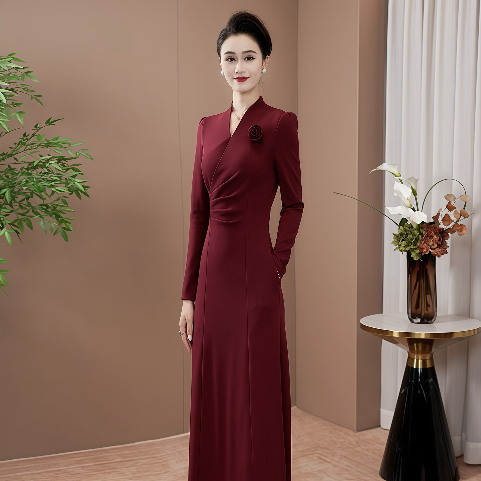 正式 长袖 显瘦气质修身 新款 场合端庄宴会礼服裙017 连衣裙2025秋季