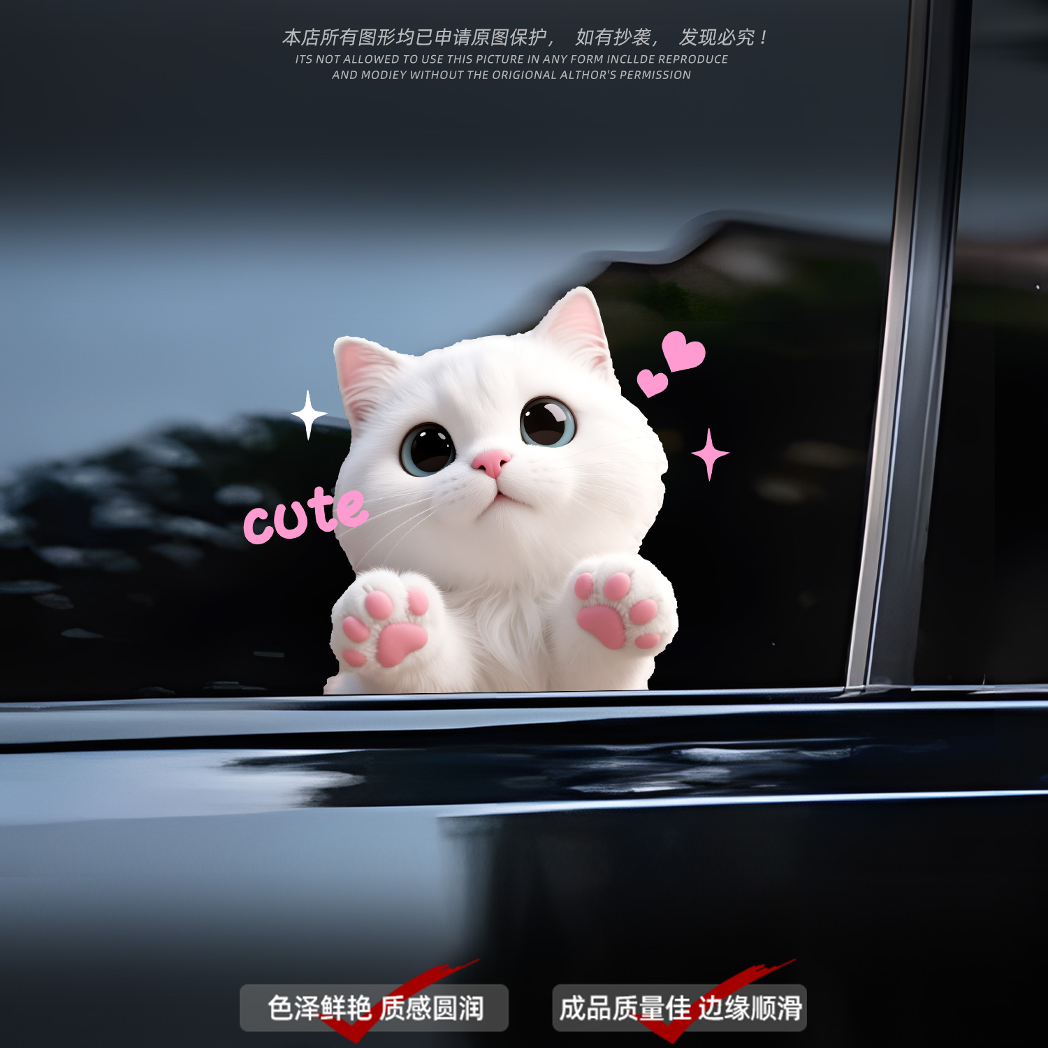 适用于车窗玻璃车身装 创意贴防水遮挡划痕保护贴 饰贴卡通小猫个性
