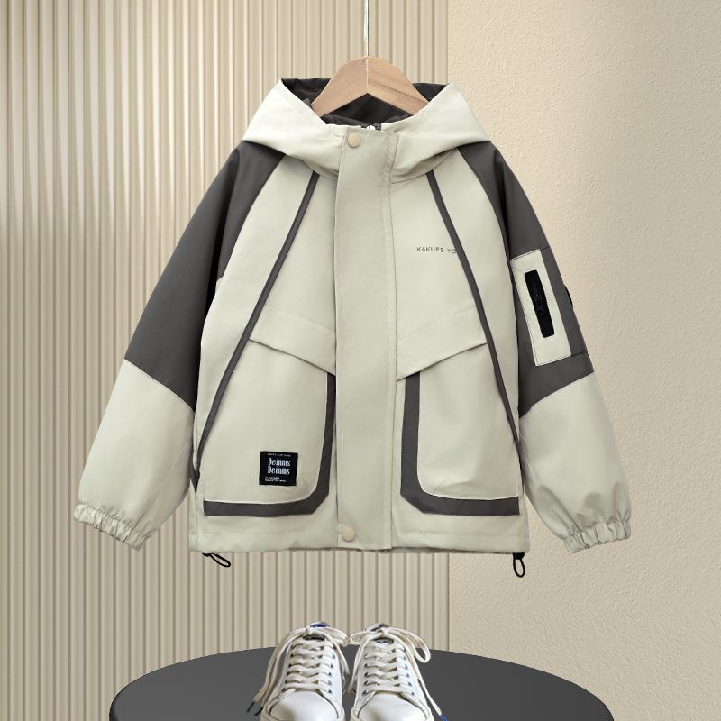 男孩冲锋衣童装 儿童森系拼色风衣洋气春秋款 春装 男童外套2025新款