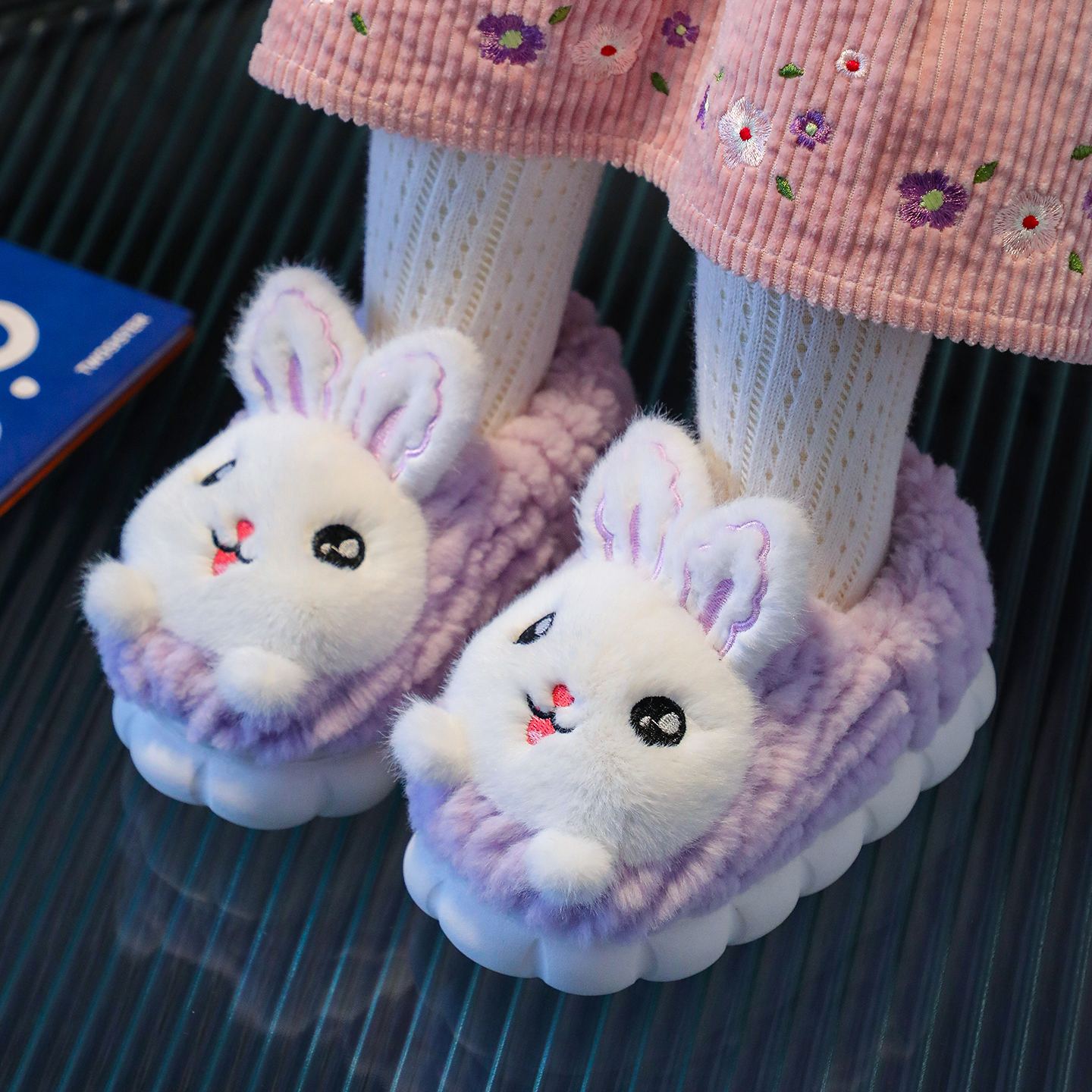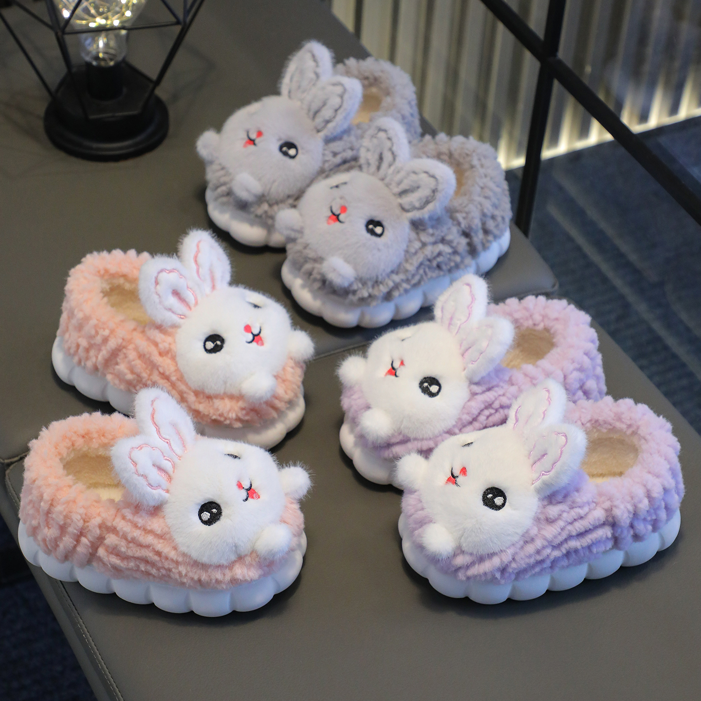 儿童棉拖鞋 秋冬加绒保暖室内居家卡通可爱女宝宝包跟防滑毛绒棉鞋