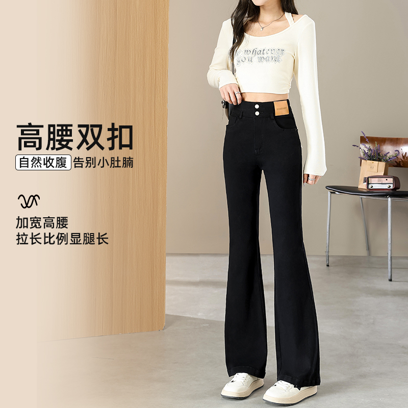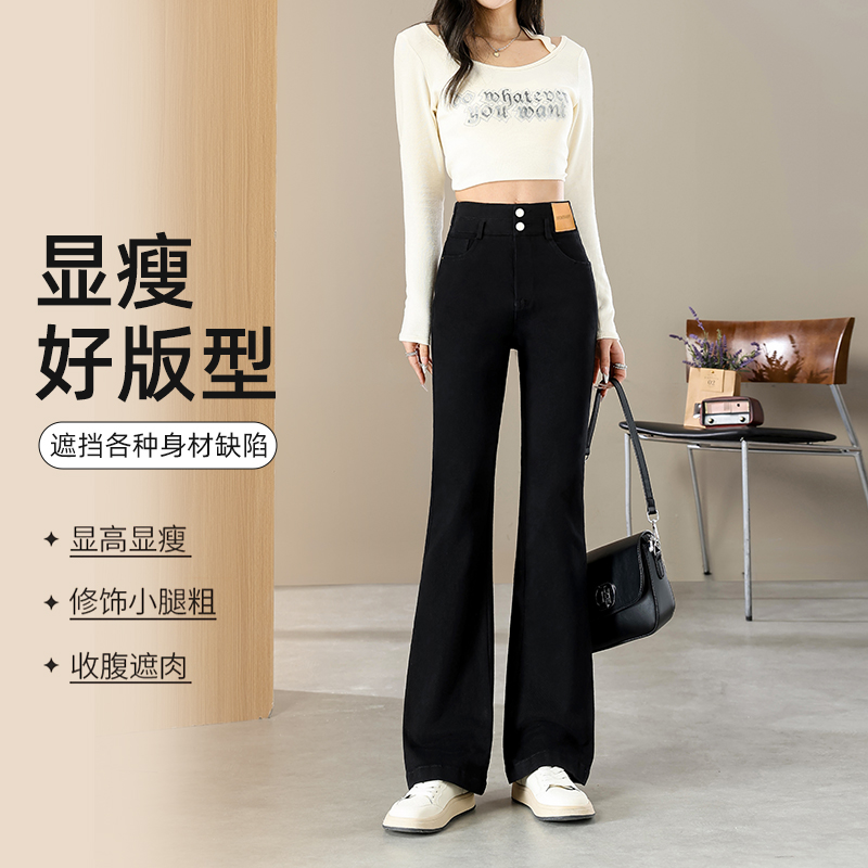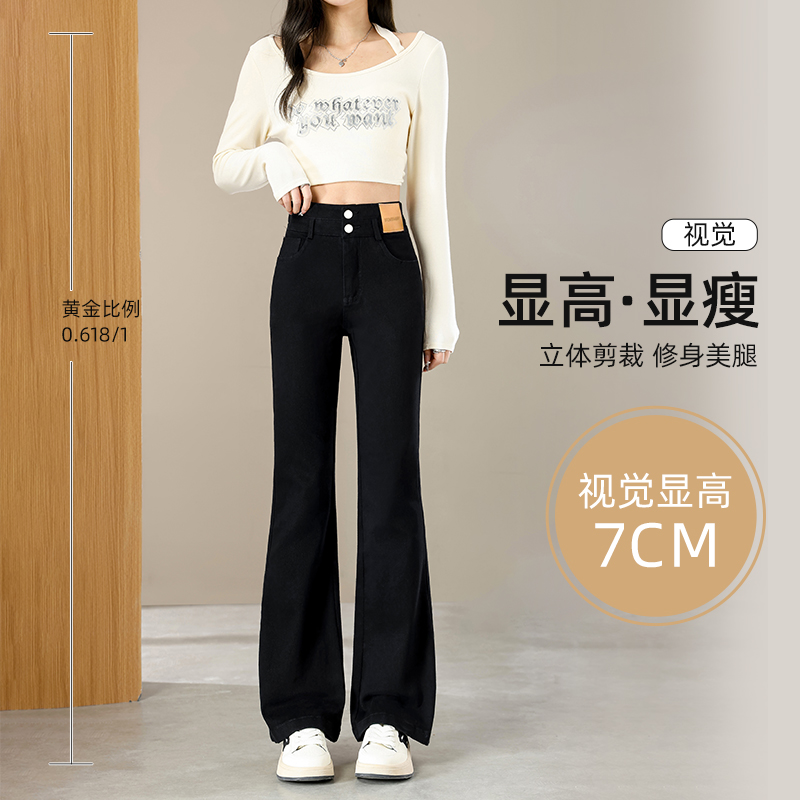 显瘦高腰秋冬小个子喇叭裤 爆款 子 女2025年春秋新款 黑色微喇牛仔裤