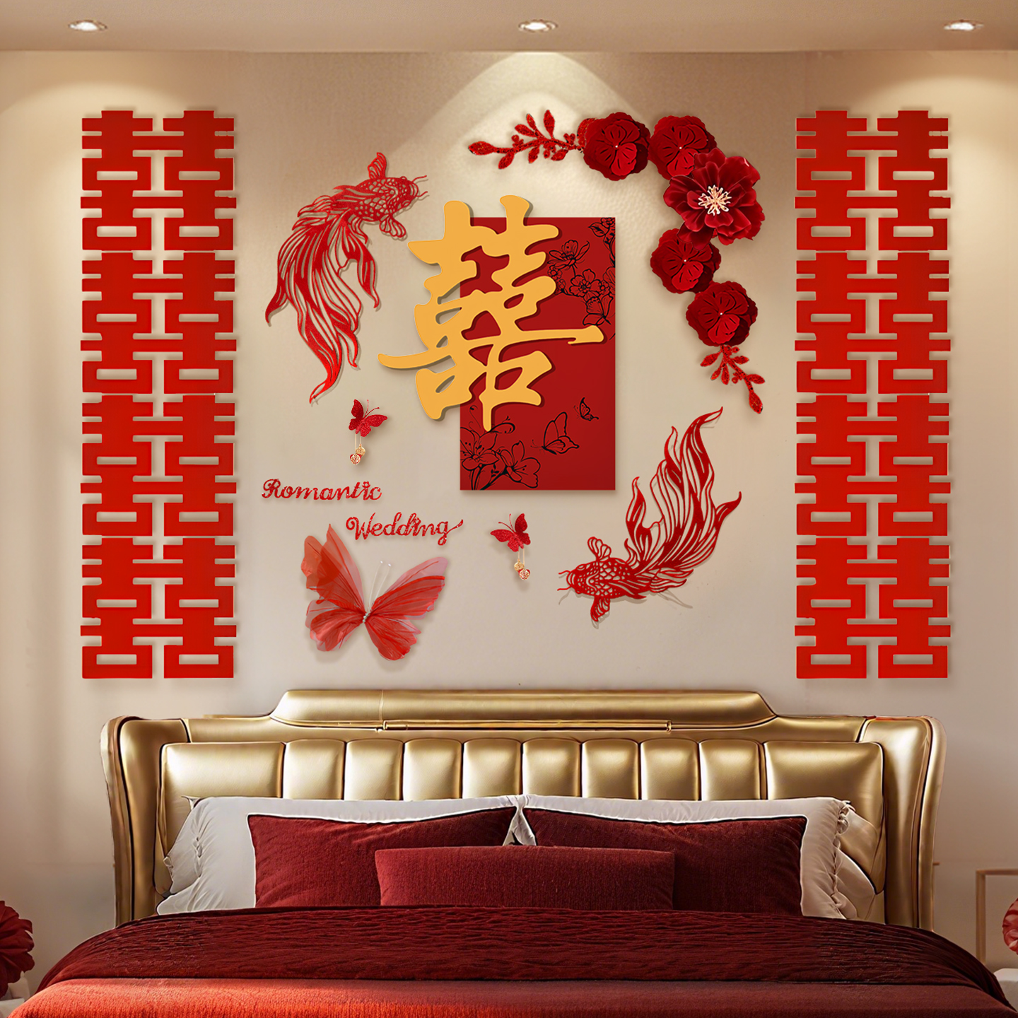 婚房布置吊顶装 饰喜字拉花结婚男女方卧室天花板结婚挂饰房顶套装