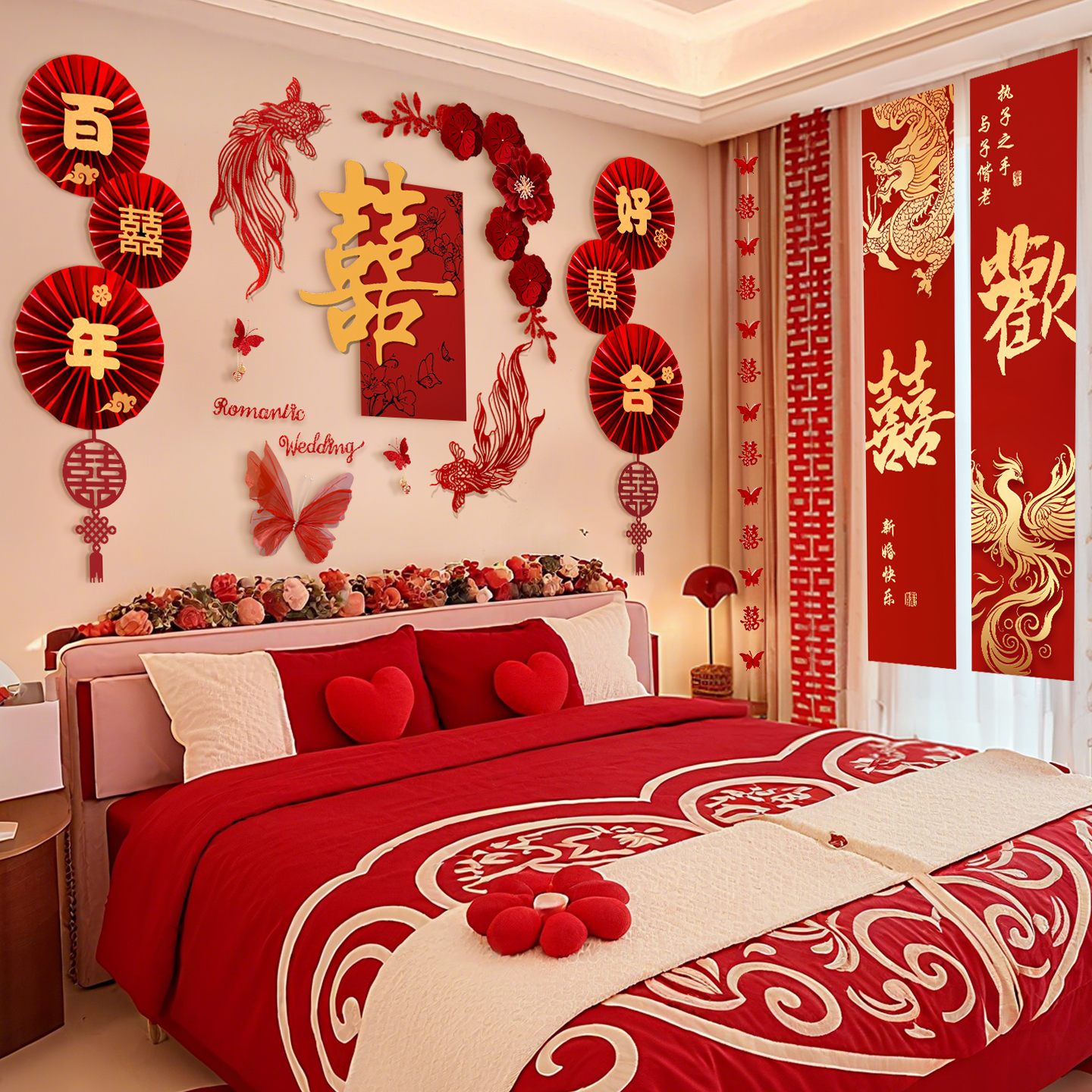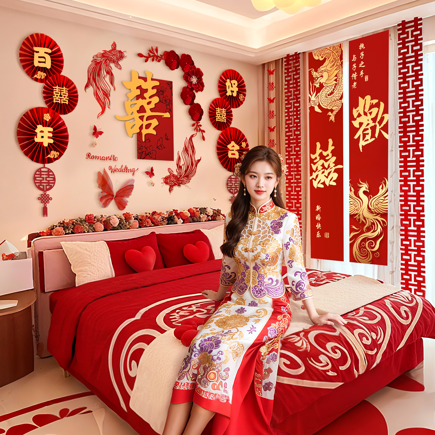 婚房布置套装 饰拉花女方卧室男方房间全套婚礼用品大全结婚 新房装