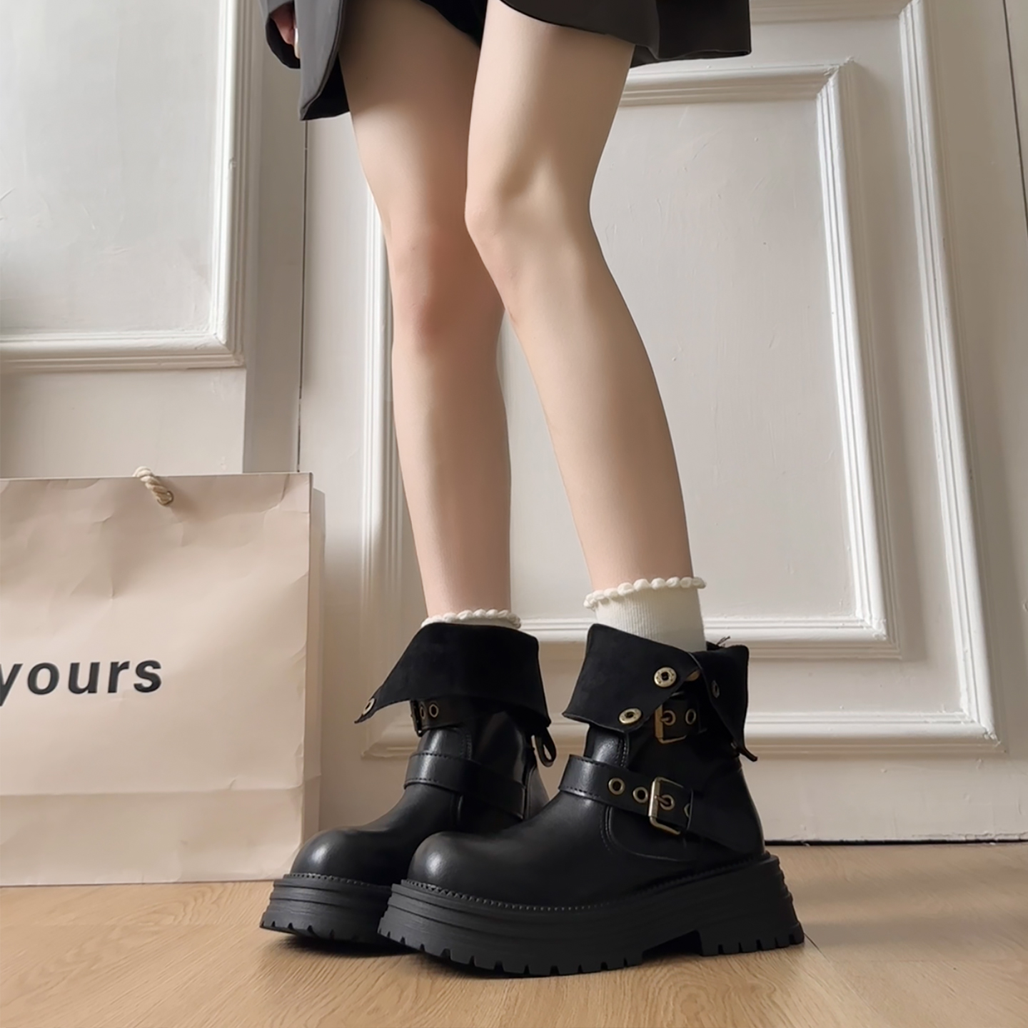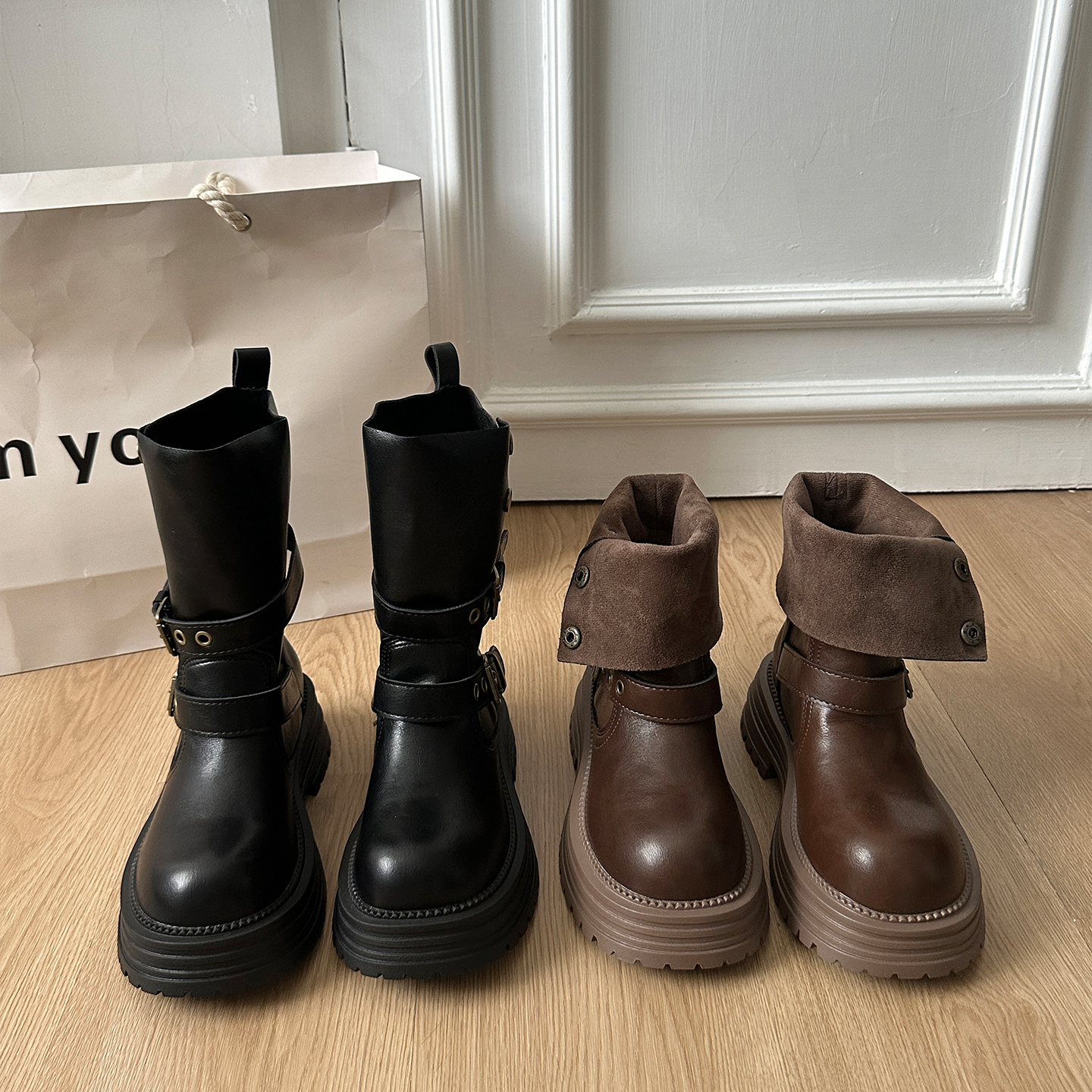 小个子增高马丁靴女2025秋冬新款 复古美拉德短筒靴子棕色超火短靴