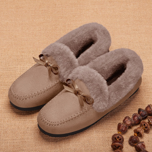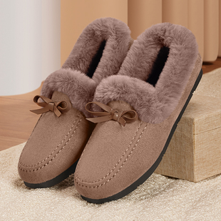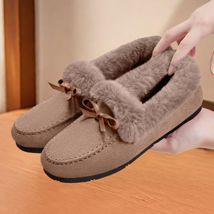 加绒加厚保暖一脚蹬软底防滑妈妈鞋 新款 雪地靴 女2024冬季 棉鞋