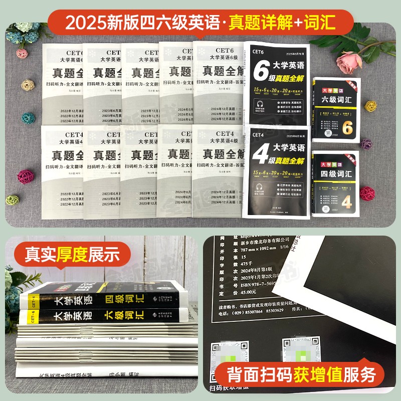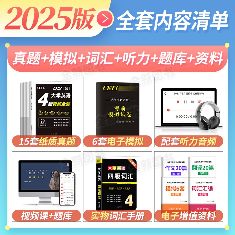 英语四级考试真题备考2025年12月历年试卷词汇书大学英语cet4级四六级通关模拟练习单词听力阅读翻译作文专项学习资料六级星火2024