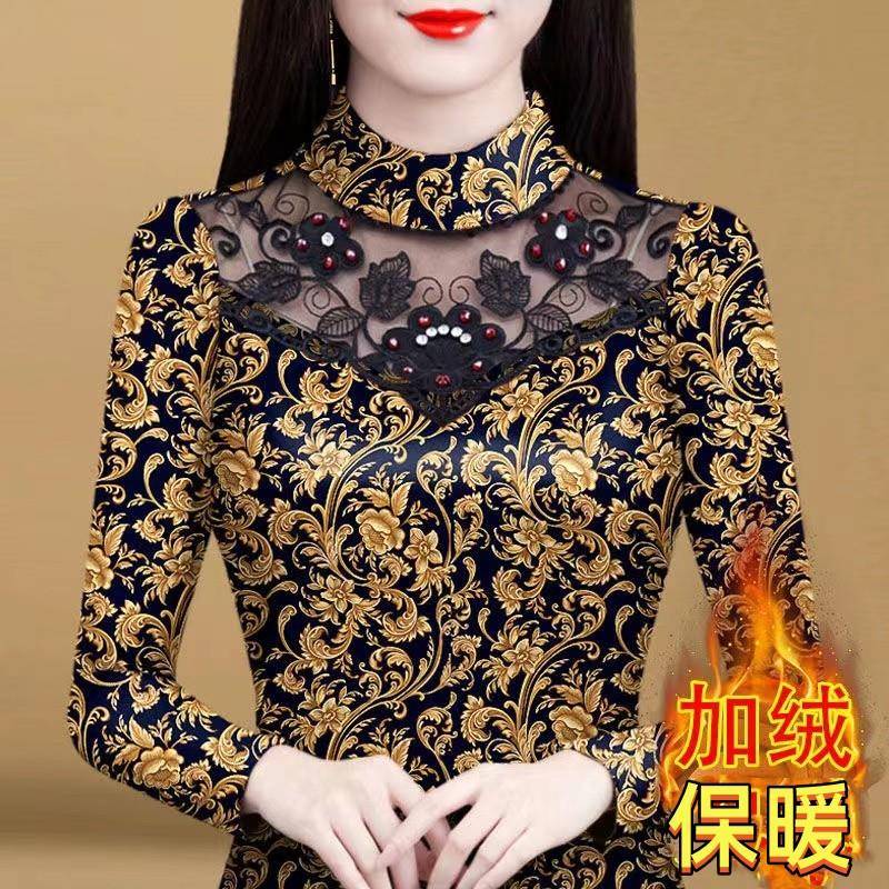 蕾丝花边一体绒0921u 长袖 打底衫 女内搭印花加绒女秋冬2025年新款