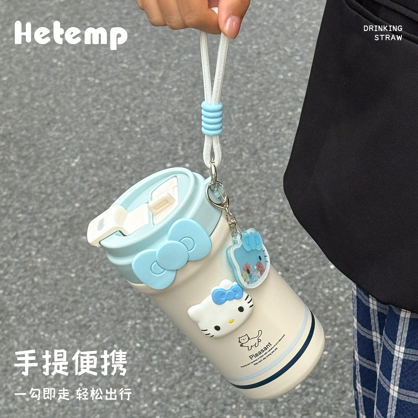 恒度HelloKitty保温杯女生高颜值吸管杯便携小巧大容量双饮水杯子