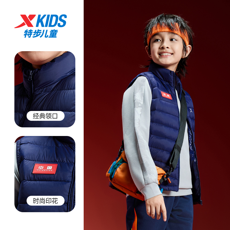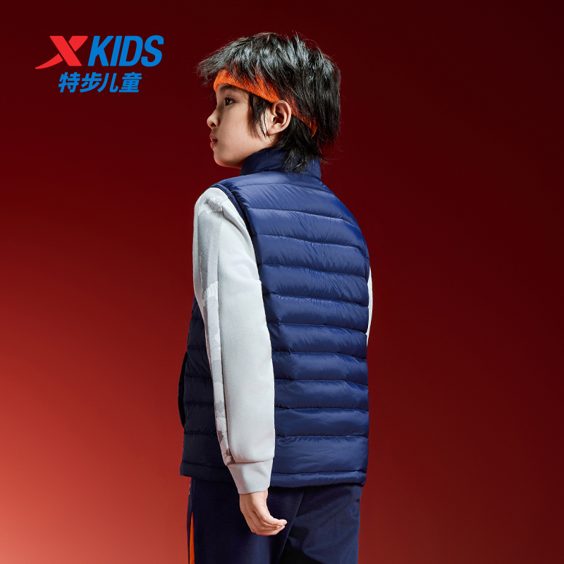 大童防寒服 羽绒马甲男童保暖外套2025秋冬新款 特步童装 儿童加厚款