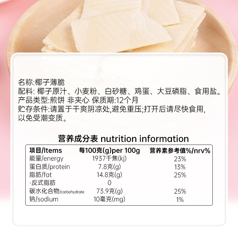 春光食品海南特产休闲零食国货椰子薄脆饼干椰香早餐 旗舰店
