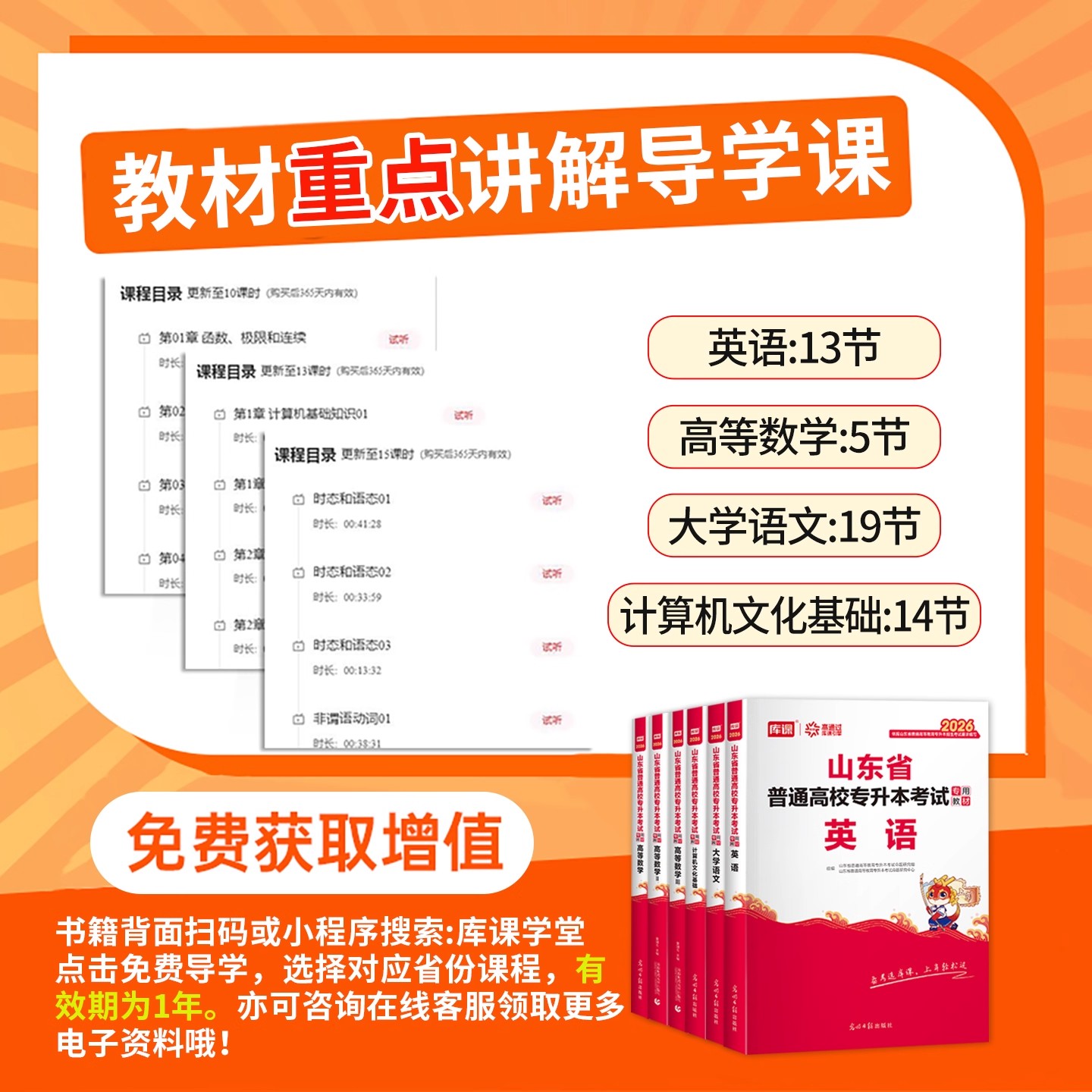 库课2026年新版 山东专升本考试大学语文计算机高等数学文学常识一二三英语教材历年真题试卷必刷题词汇书复习资料小红本网课库克