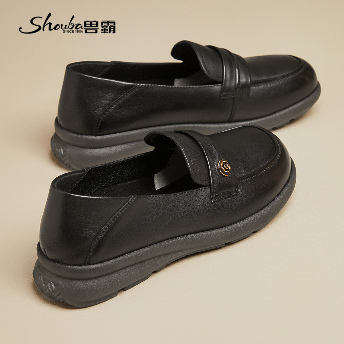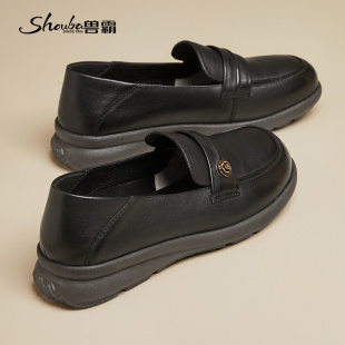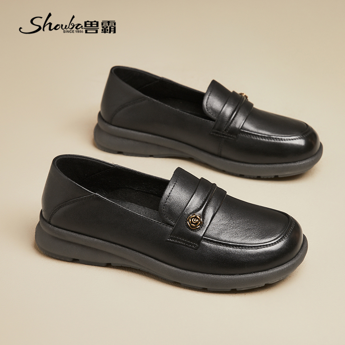 女士百搭休闲一脚蹬豆豆单鞋 春秋真皮软底乐福鞋 2025新款 兽霸女鞋